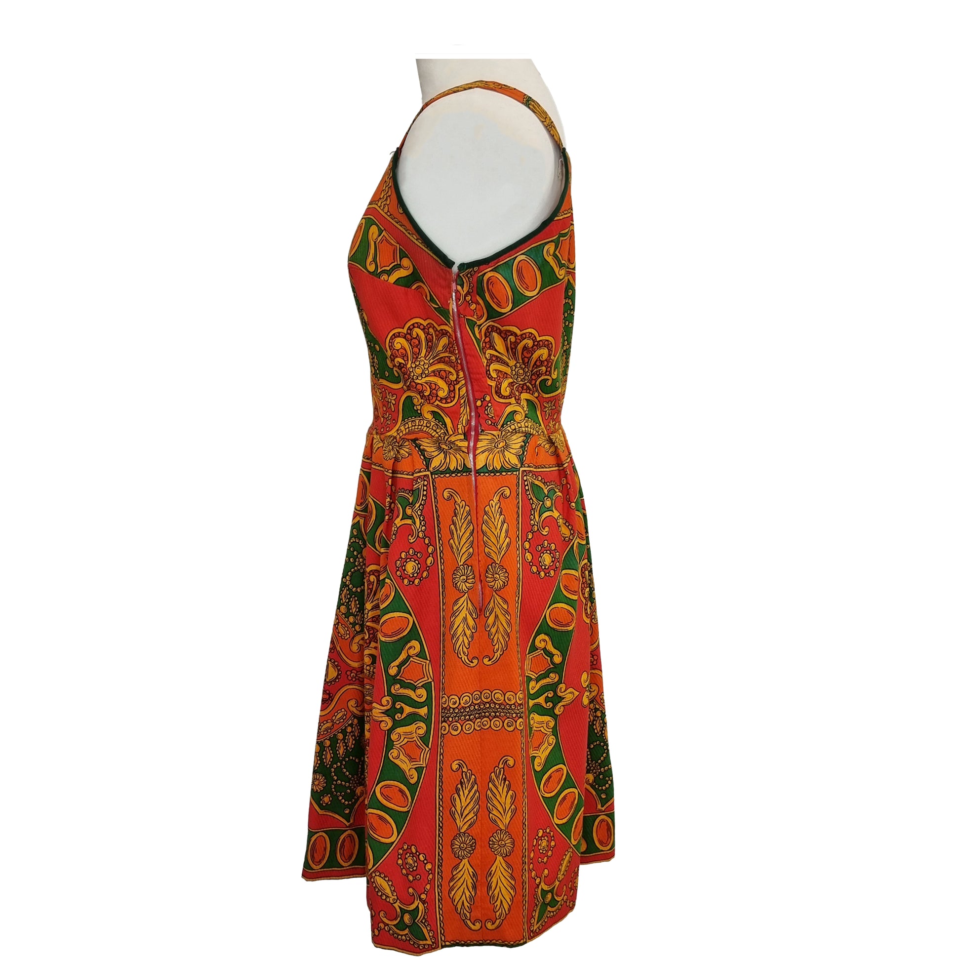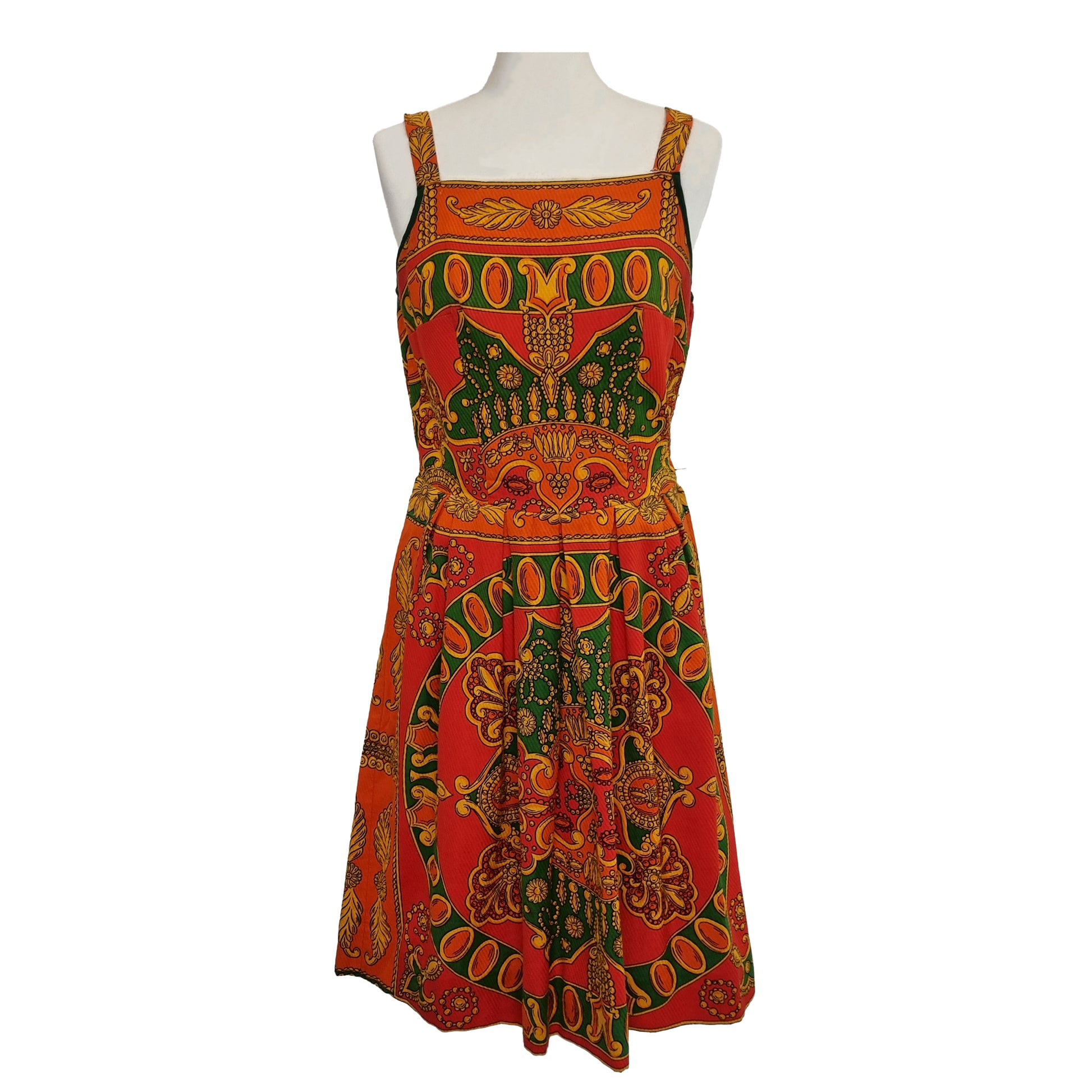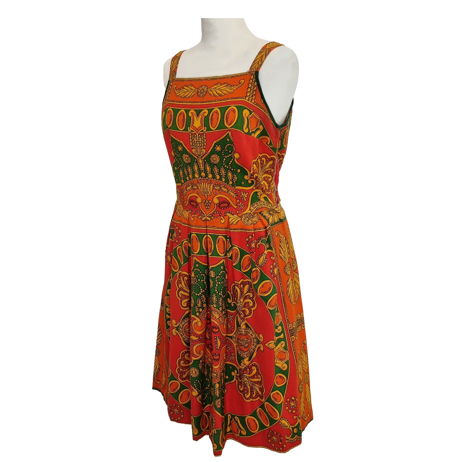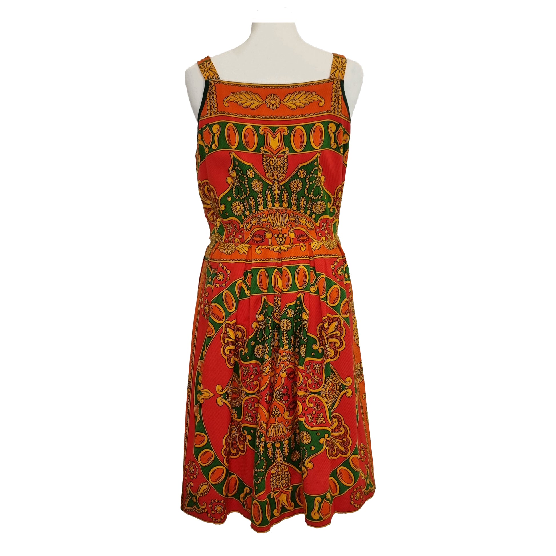 1950’s Red Gold And Green Baroque Jewel Print Dress | Vintage