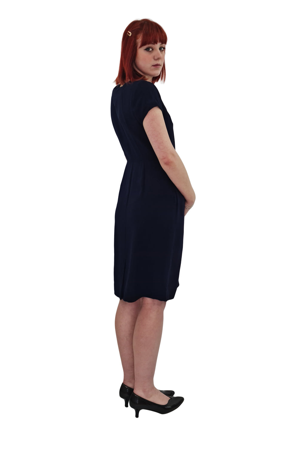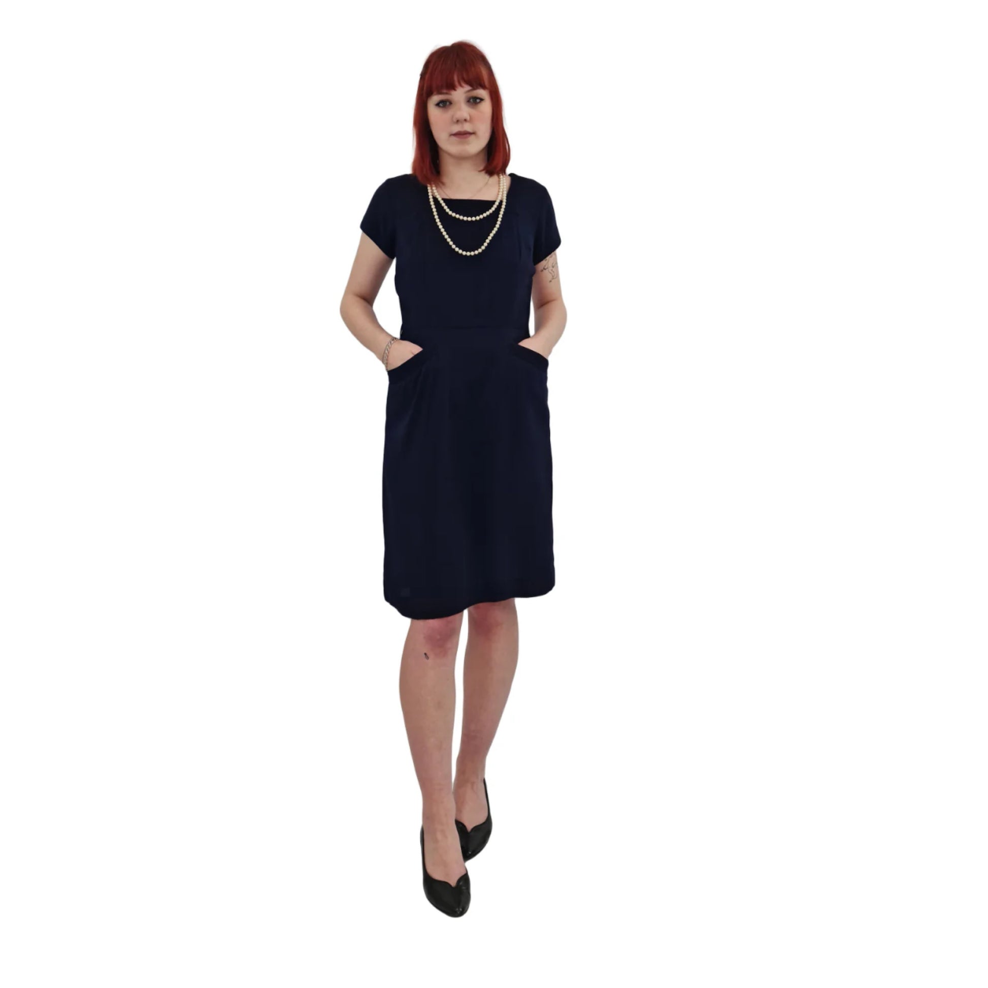 1950's Peggy Page Navy Blue Linen Shift Dress | Vintage
