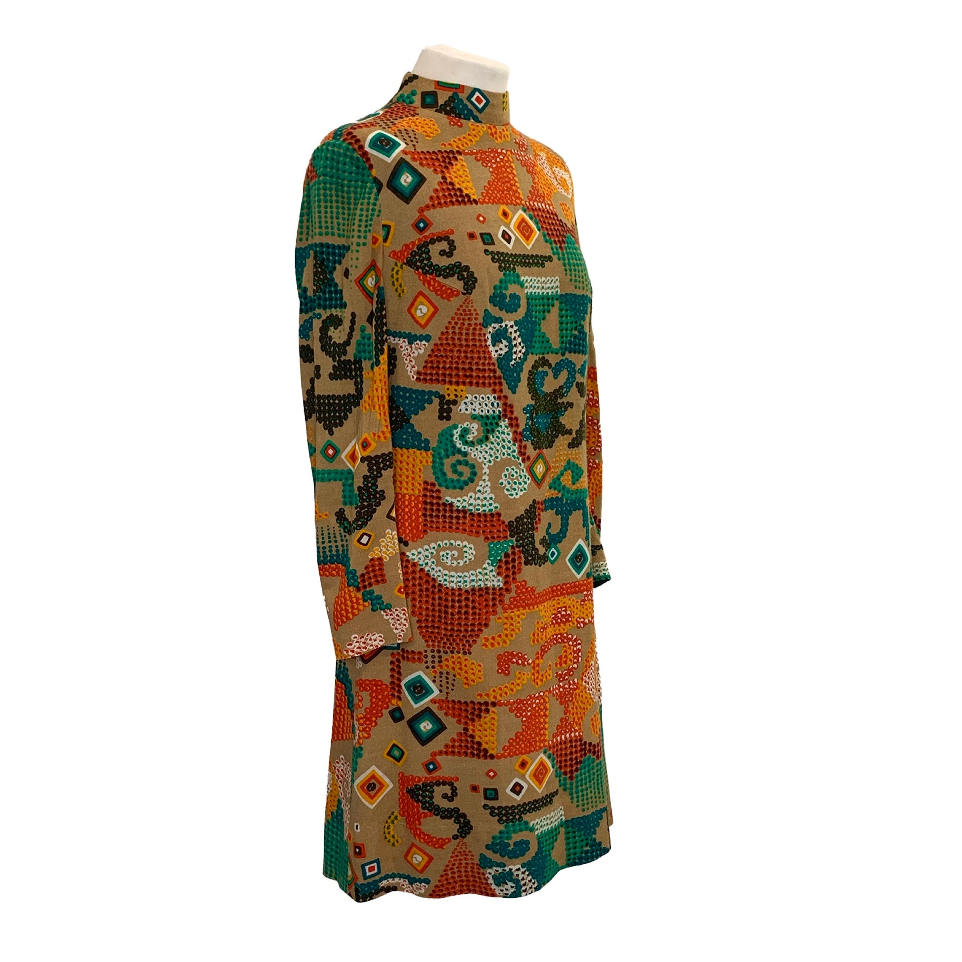 1960’s Long Sleeve Abstract Print Jersey Shift Dress | Vintage
