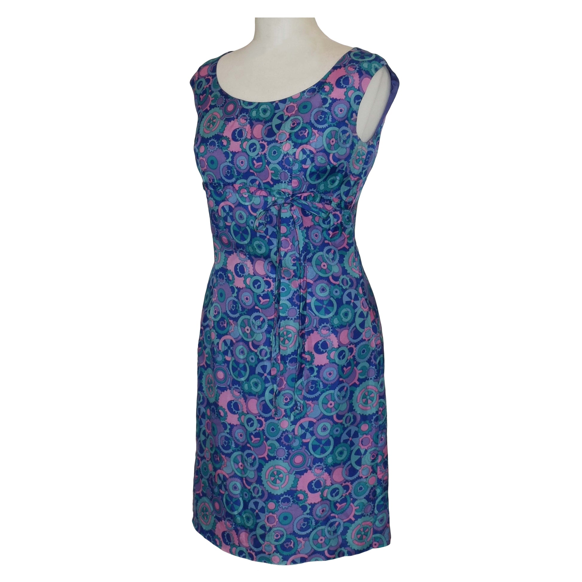 1960’s Novelty Cog And Gears Print Wiggle Dress | Vintage