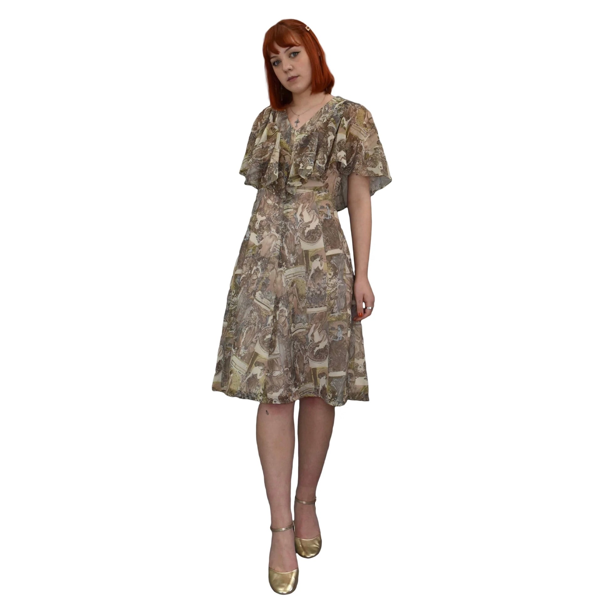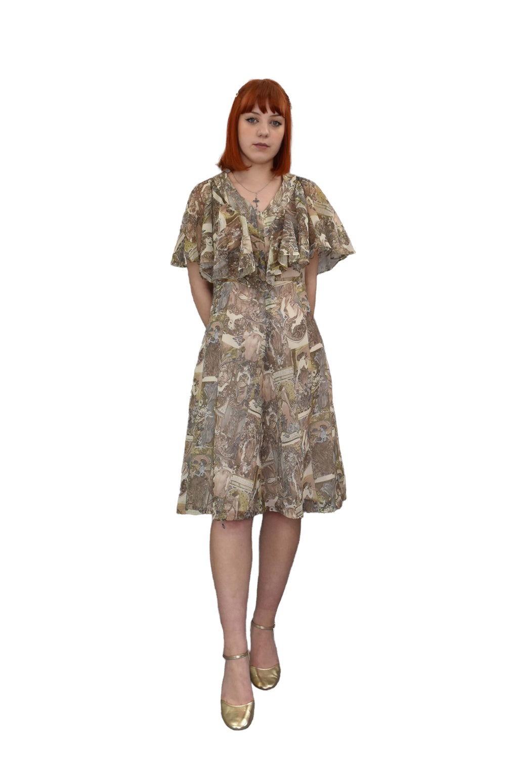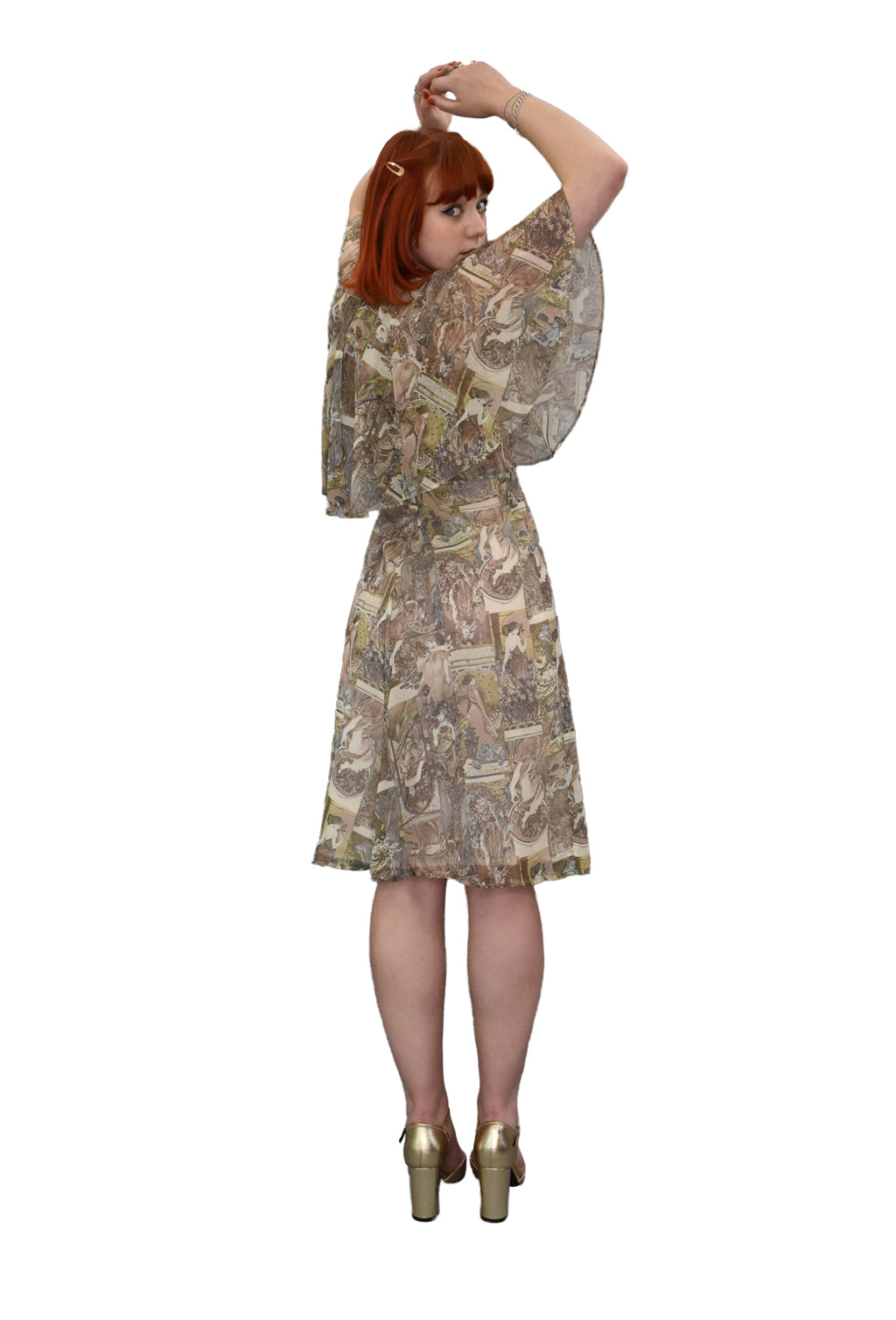 1970’s Art Nouveau Print Angel Sleeve Dress | Vintage