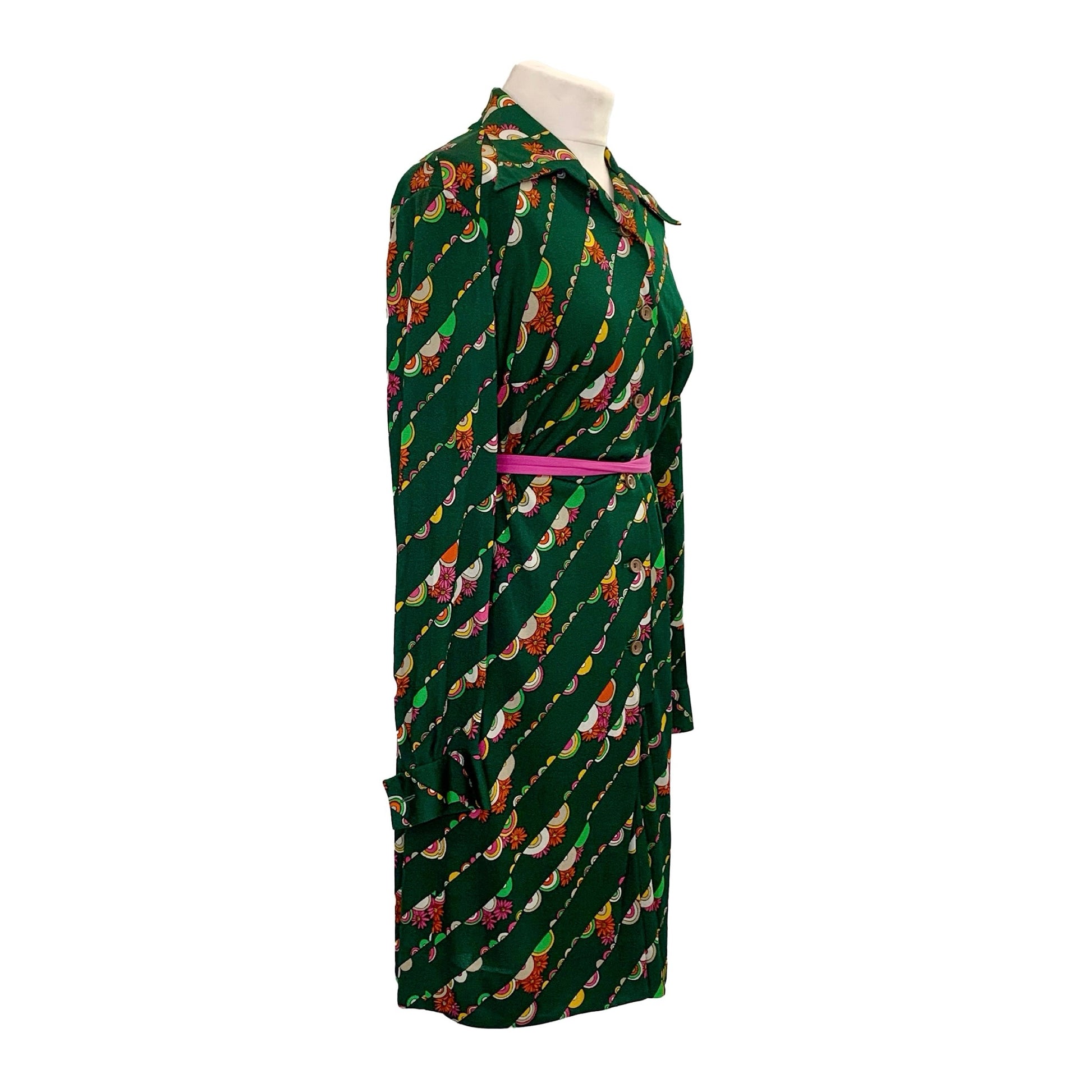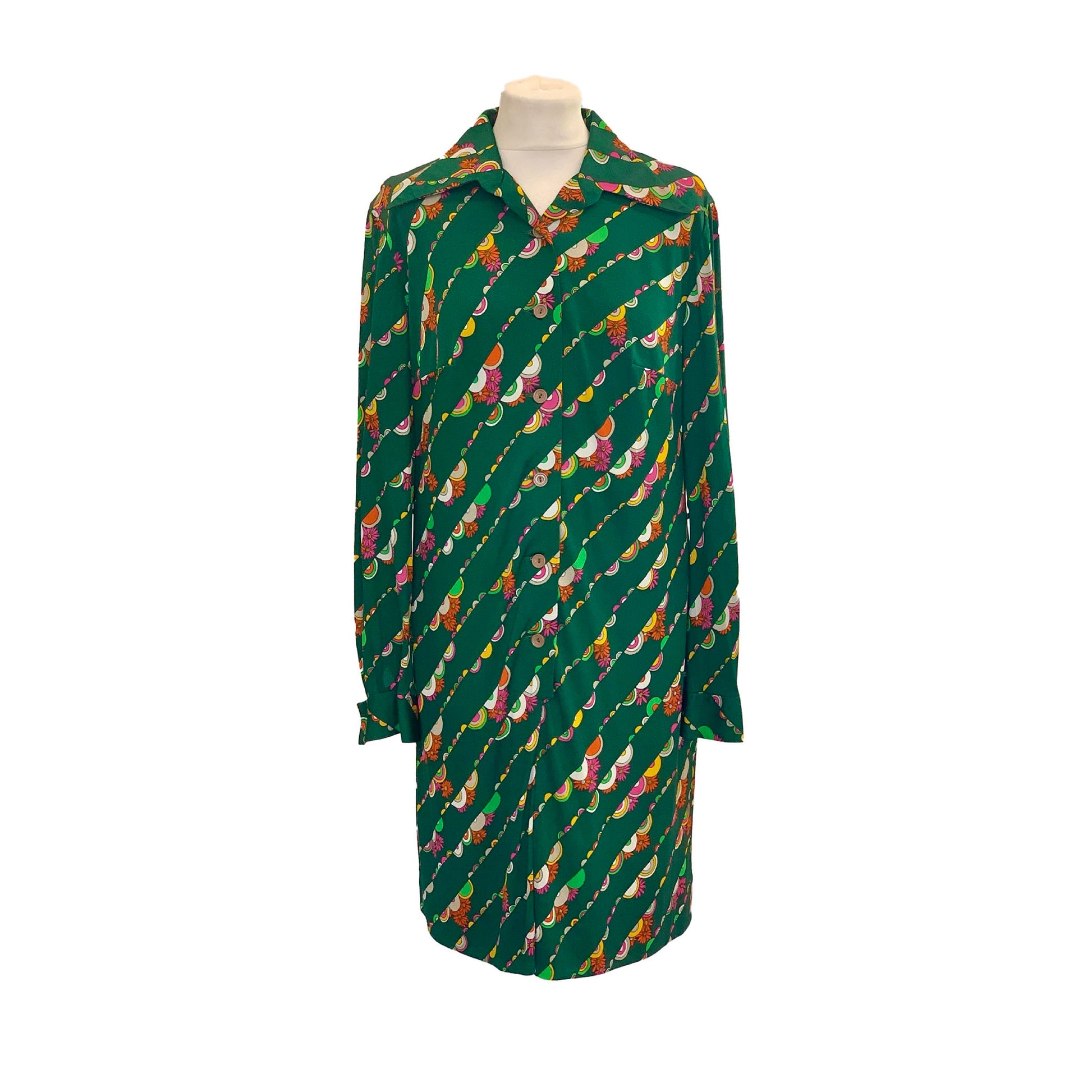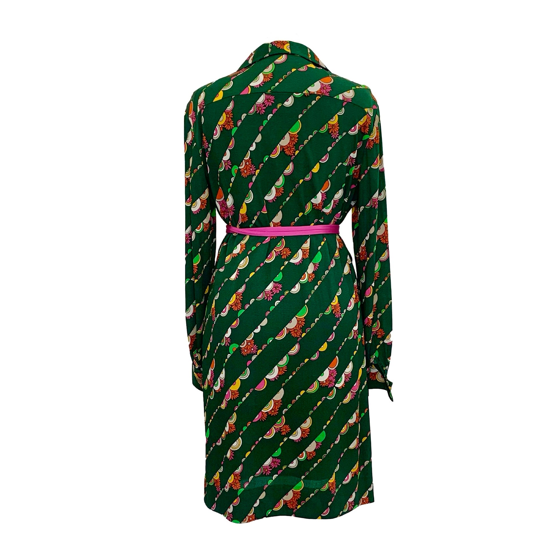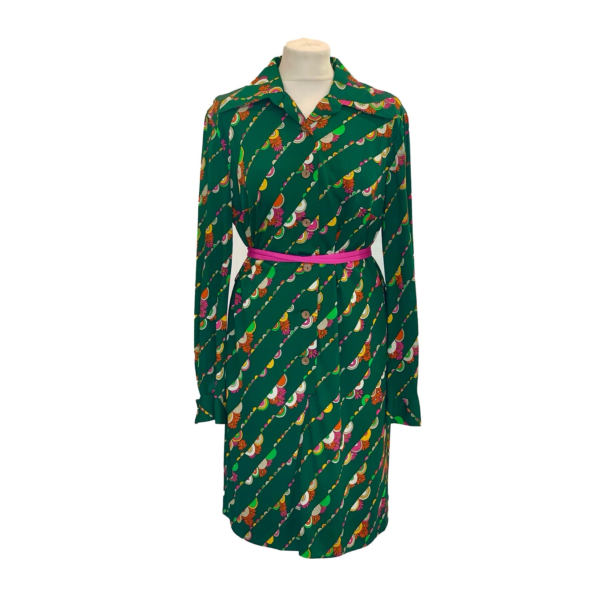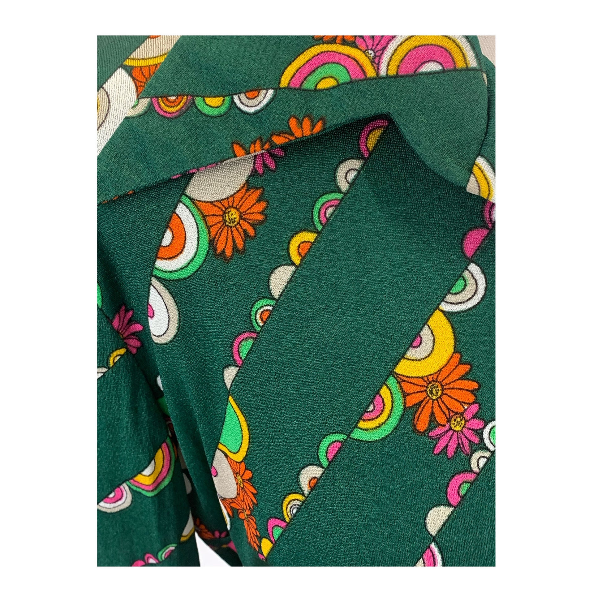 1970’s Wide Collar Groovy Print Green Dress | Vintage