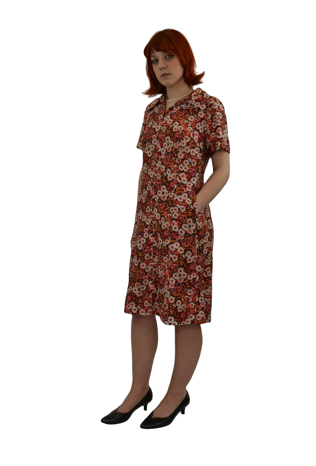 1970’s Zip Front Floral Dress With Dagger Collars | Vintage
