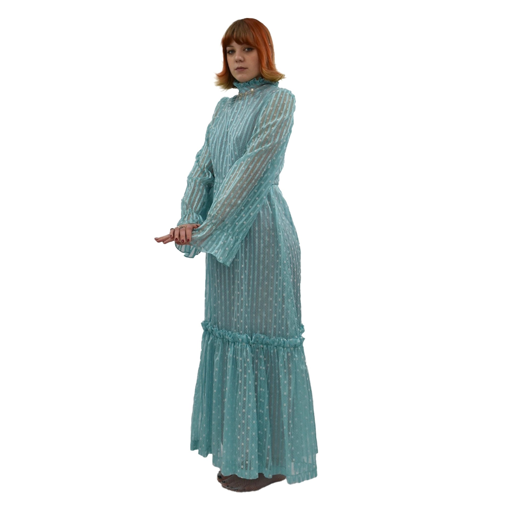 1970's Edwardian Style Aqua Maxi Dress | Vintage
