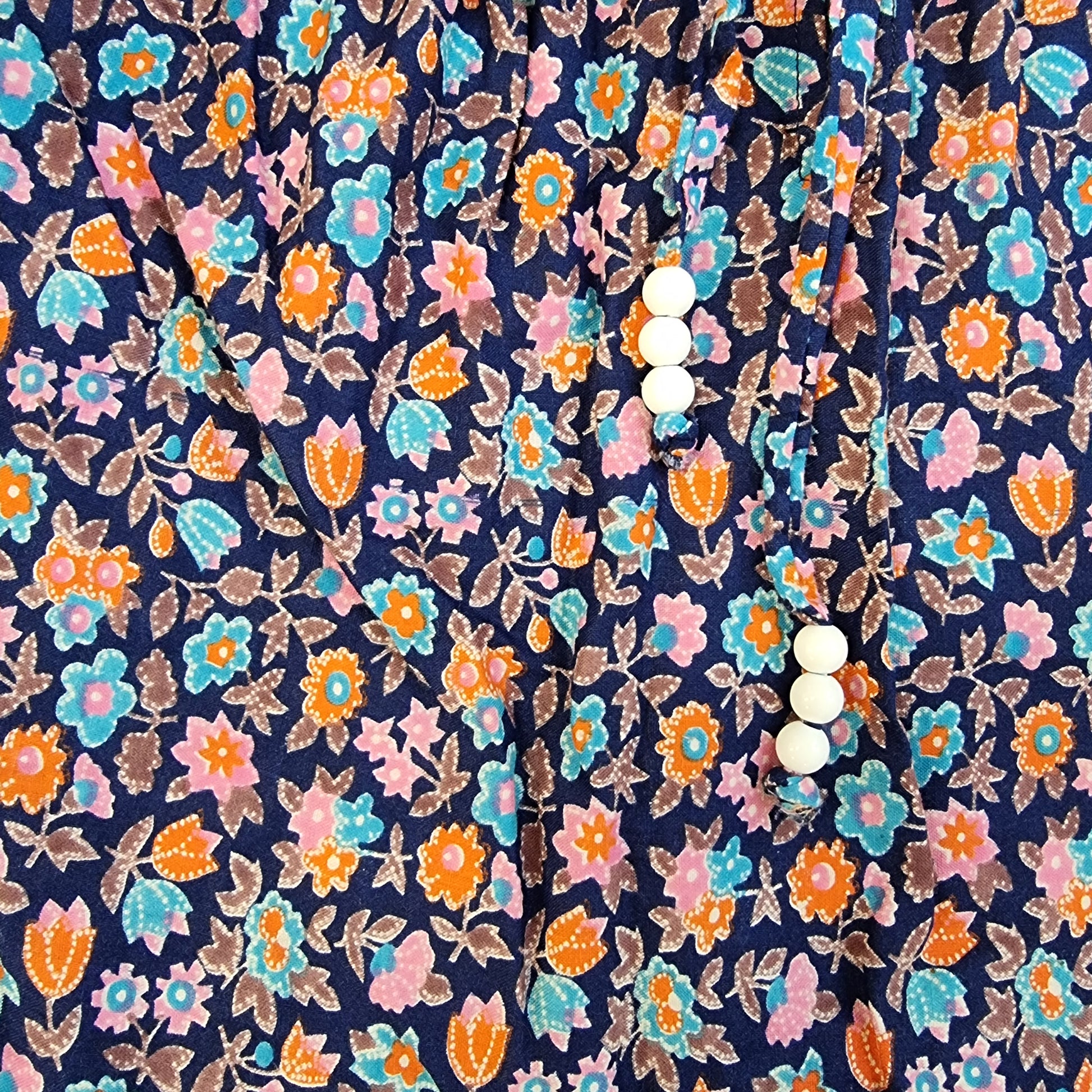 A gorgeous 1970's vintage maxi dress in a blue/multi floral print.