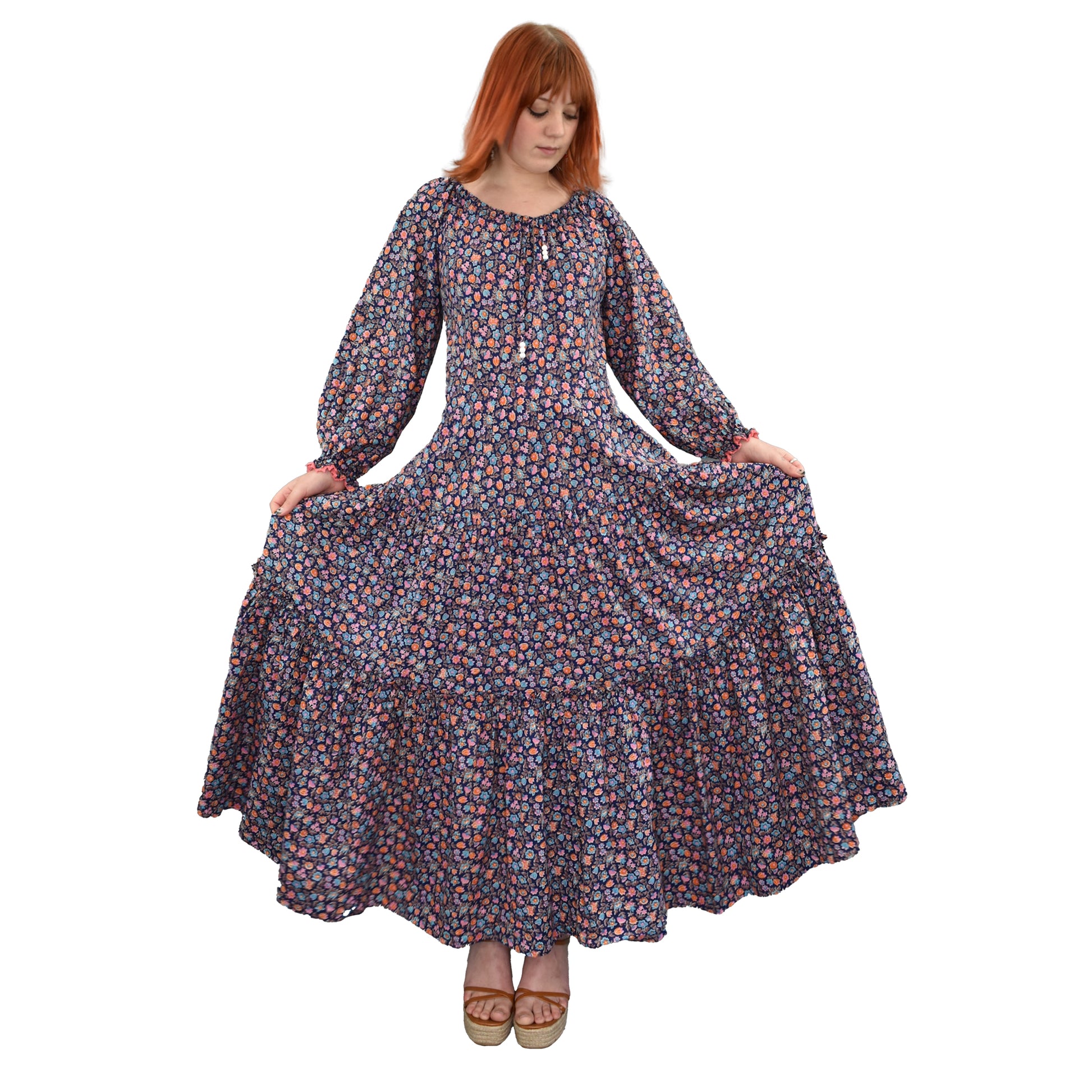 1970's Floral Cotton Tiered Maxi Dress | Vintage