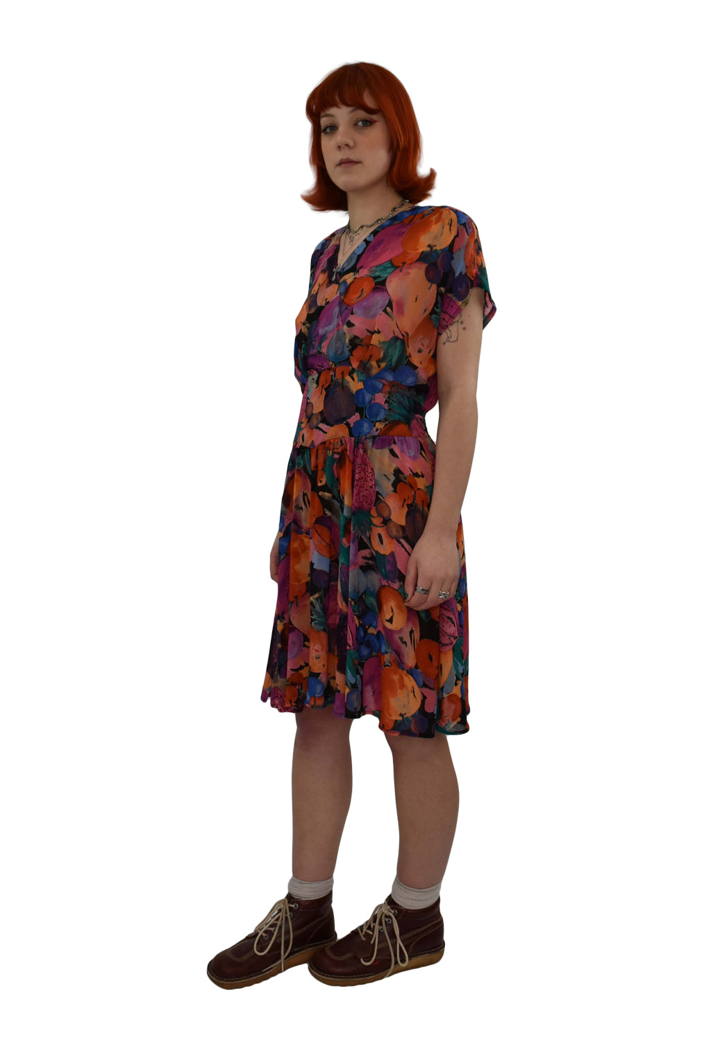 1980’s Abstract Fruit print Cross Front Dress | Vintage