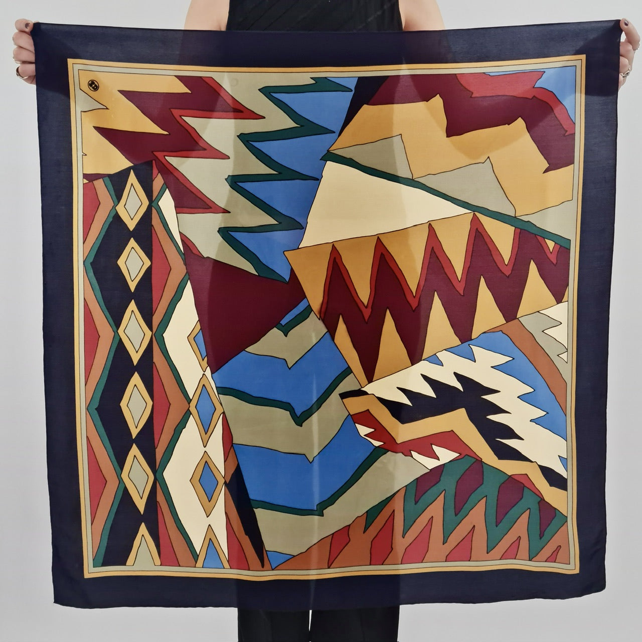 1980’s Abstract Geometric Silk Scarf | Vintage