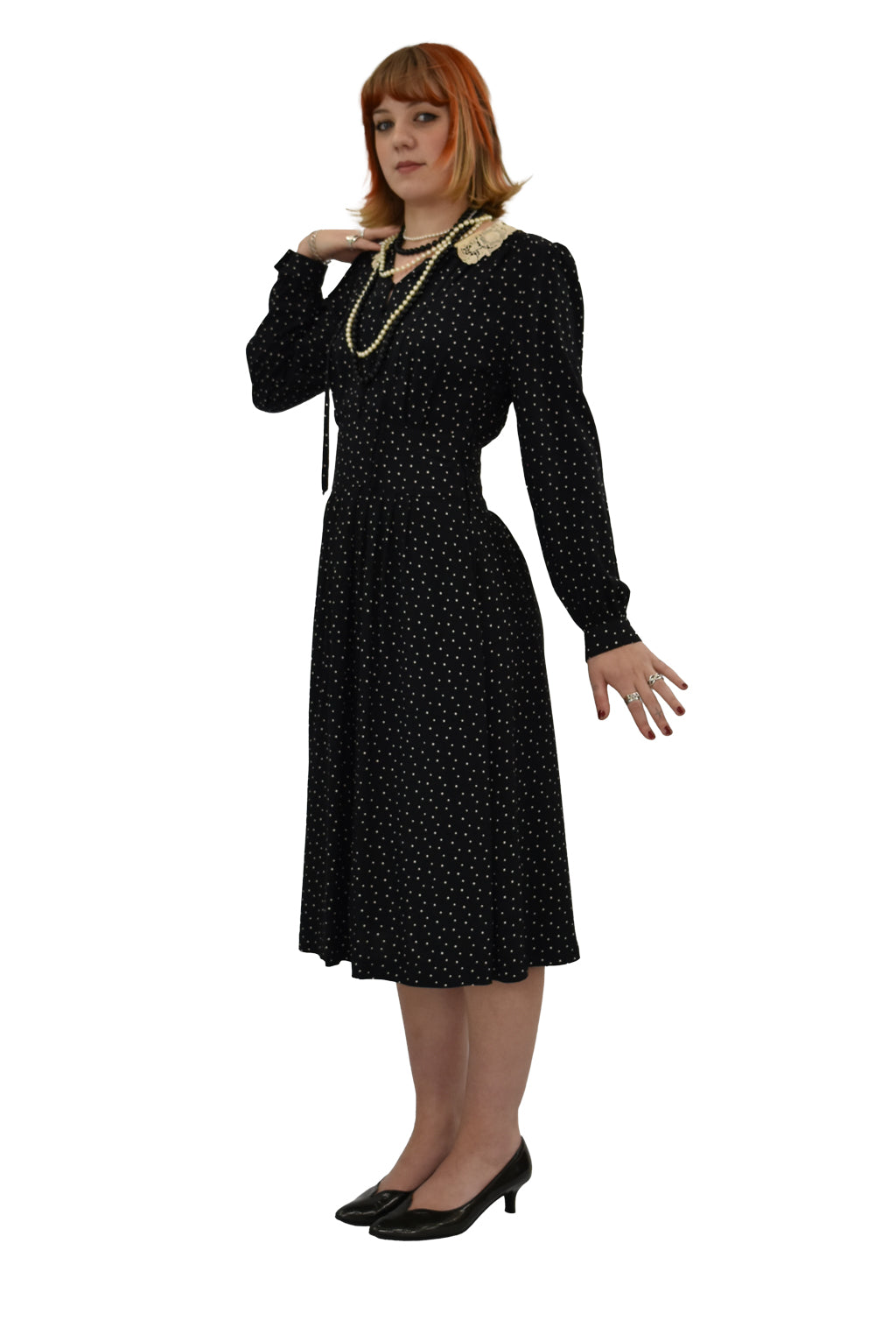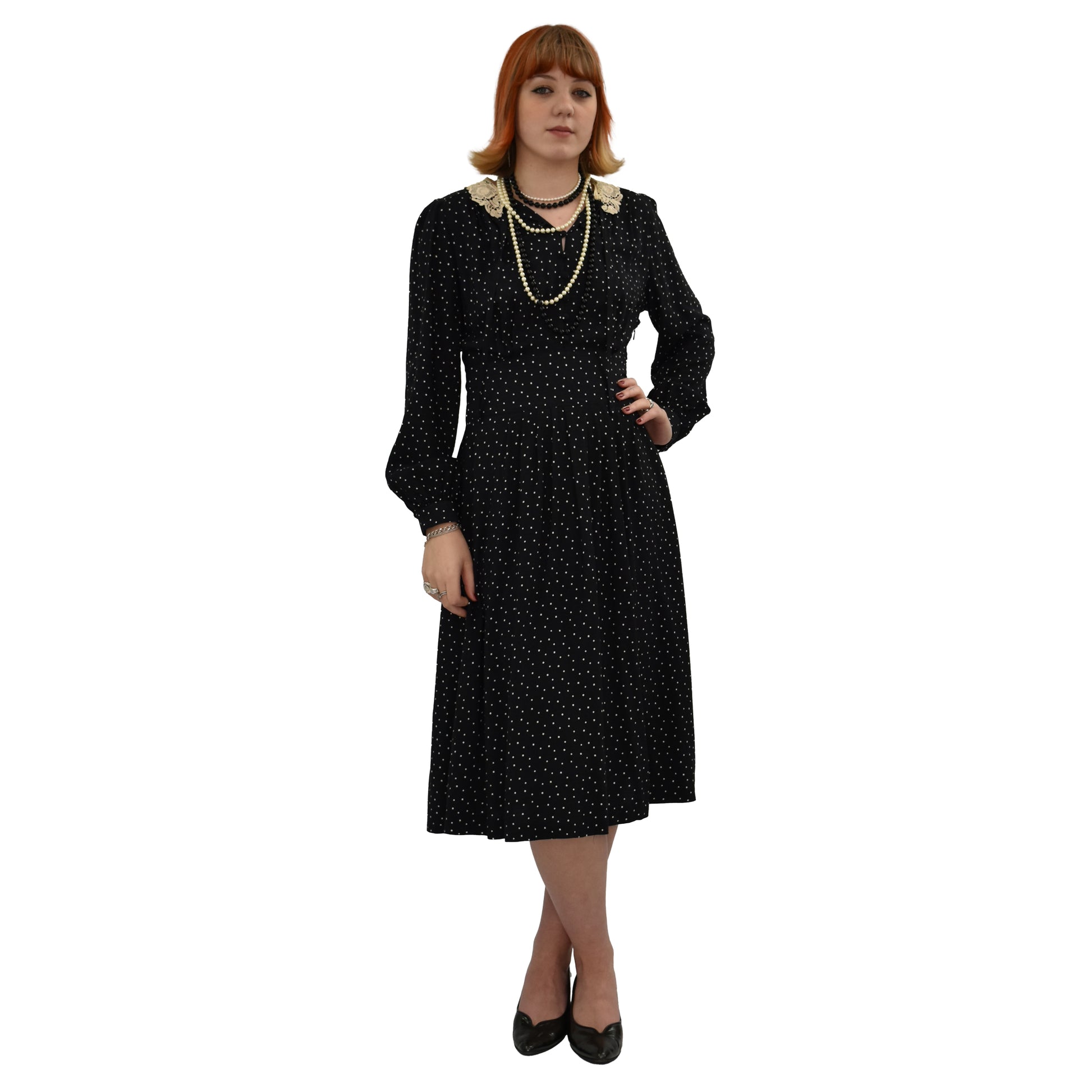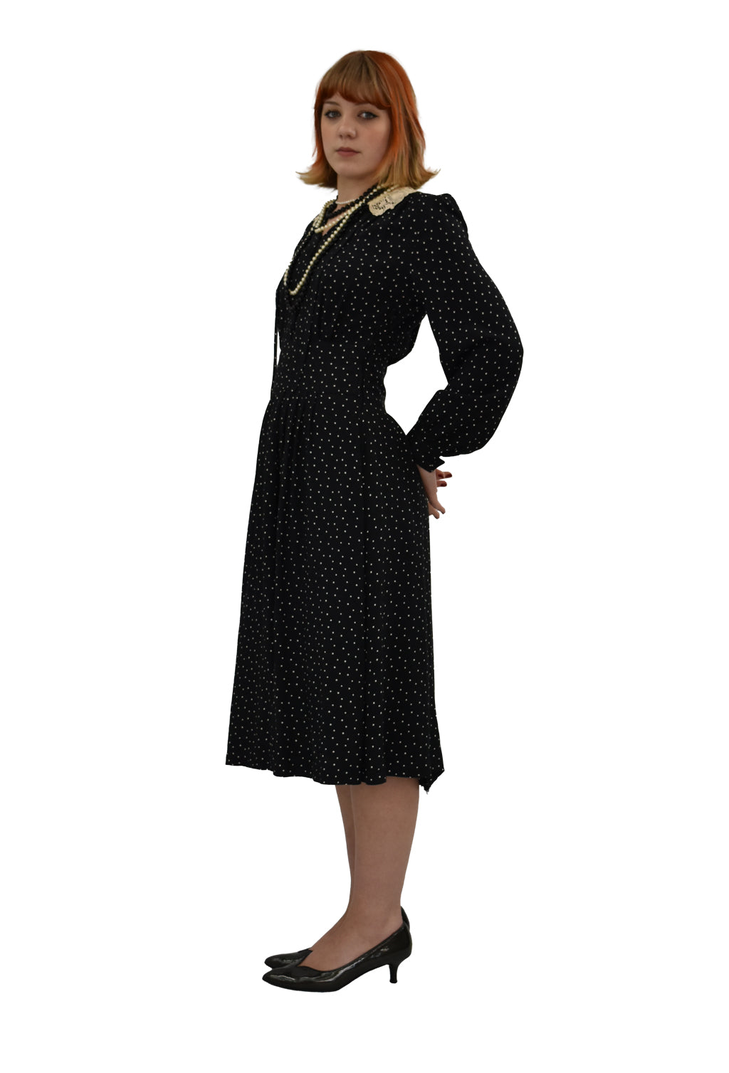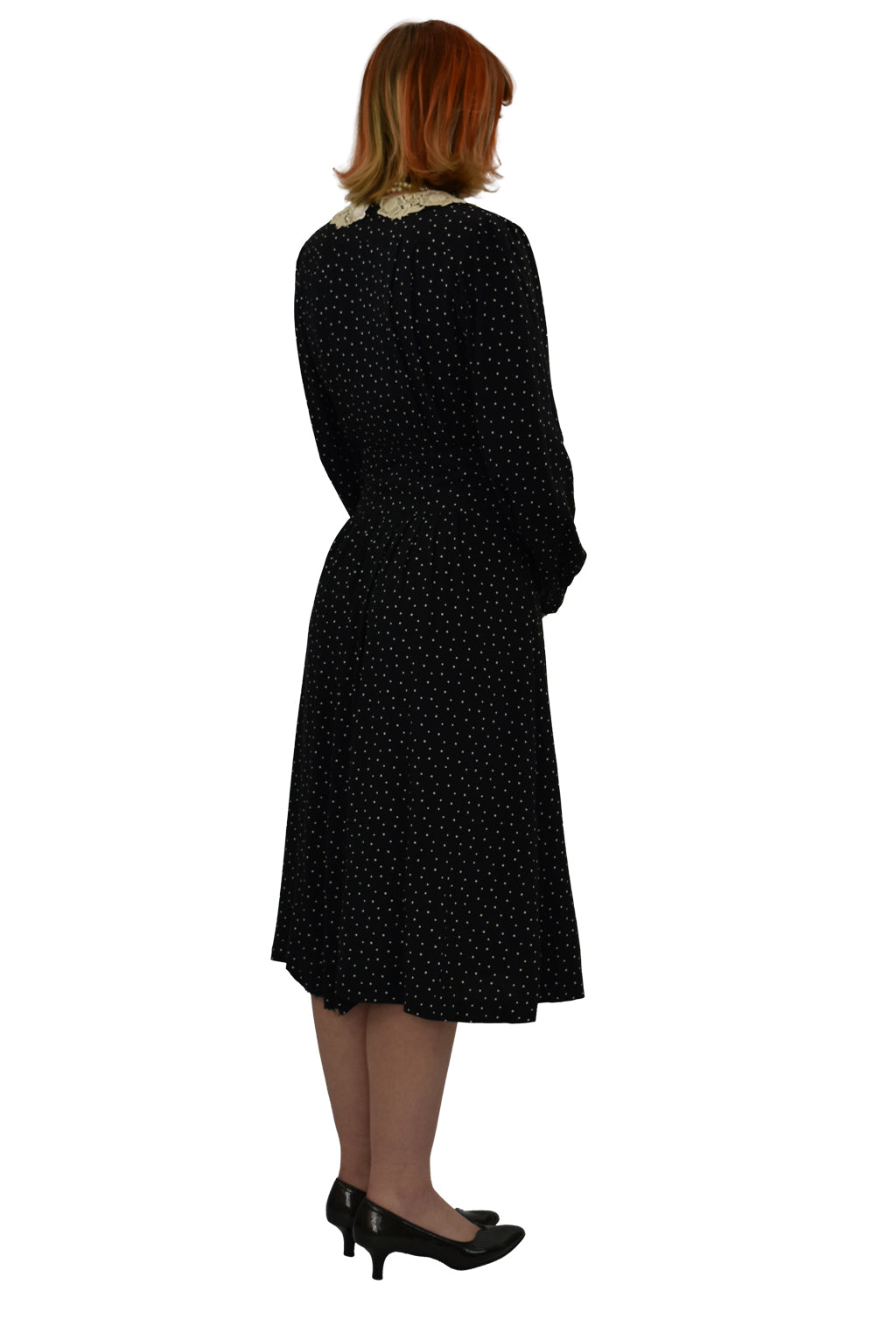 1980’s Does 1940’s Jacquard Black Dress With Lace Collars | Vintage