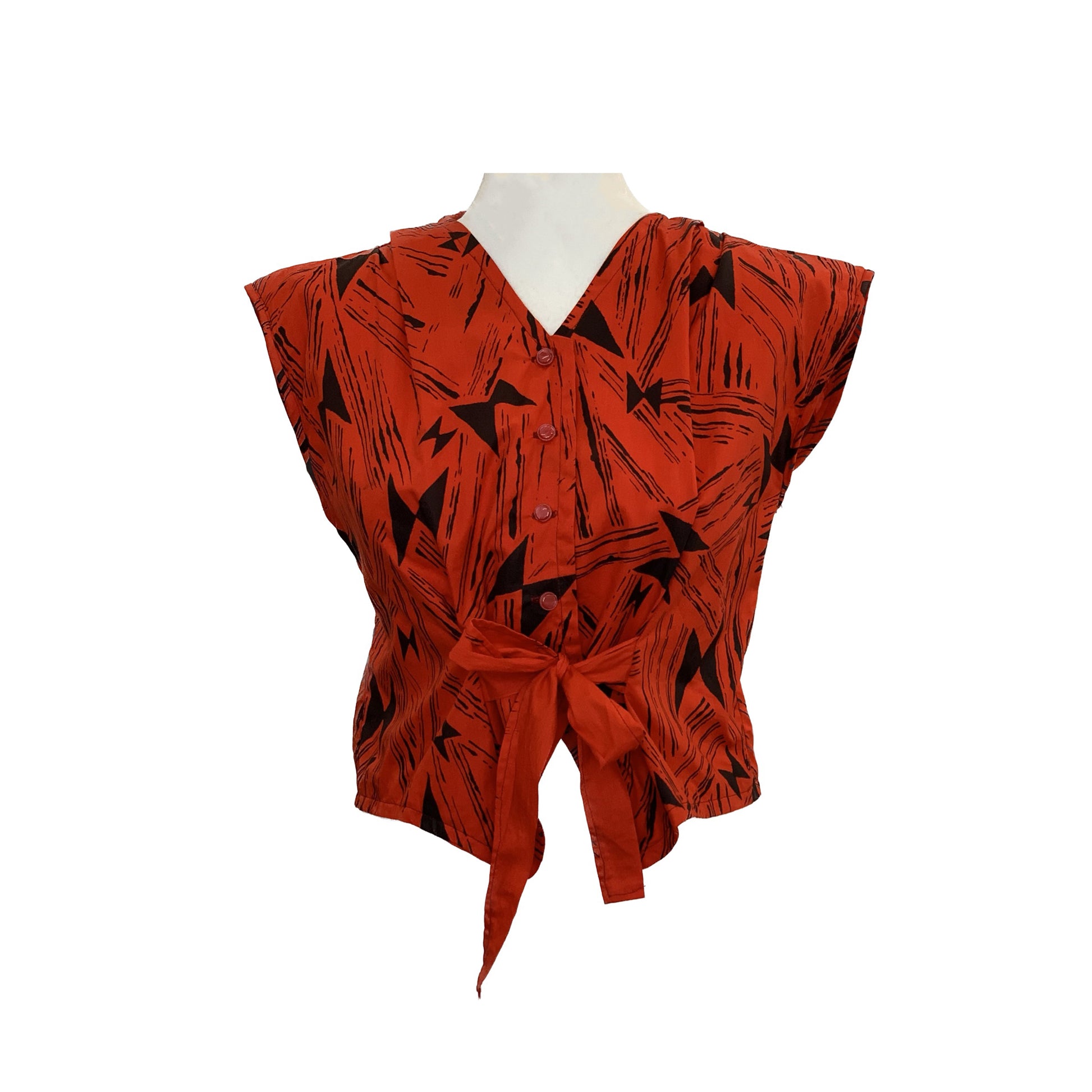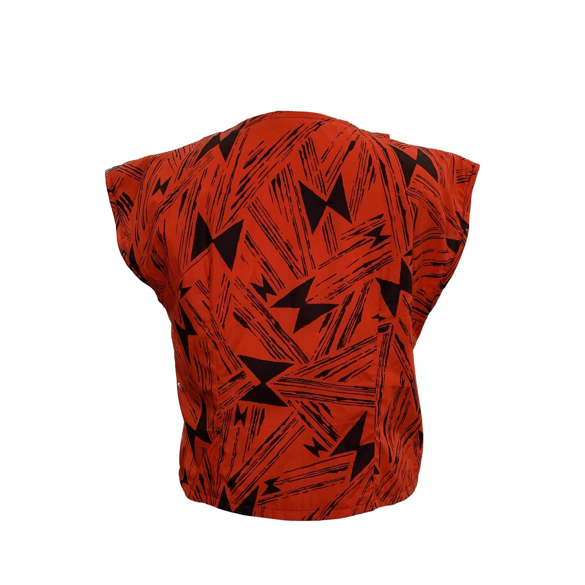 1980’s Red Abstract Geometric Print Blouse | Vintage