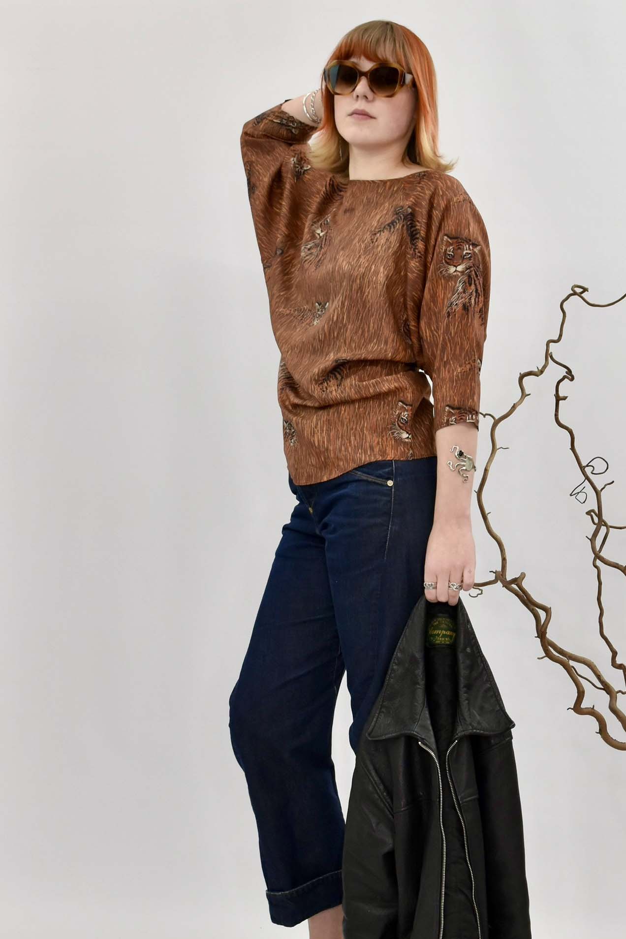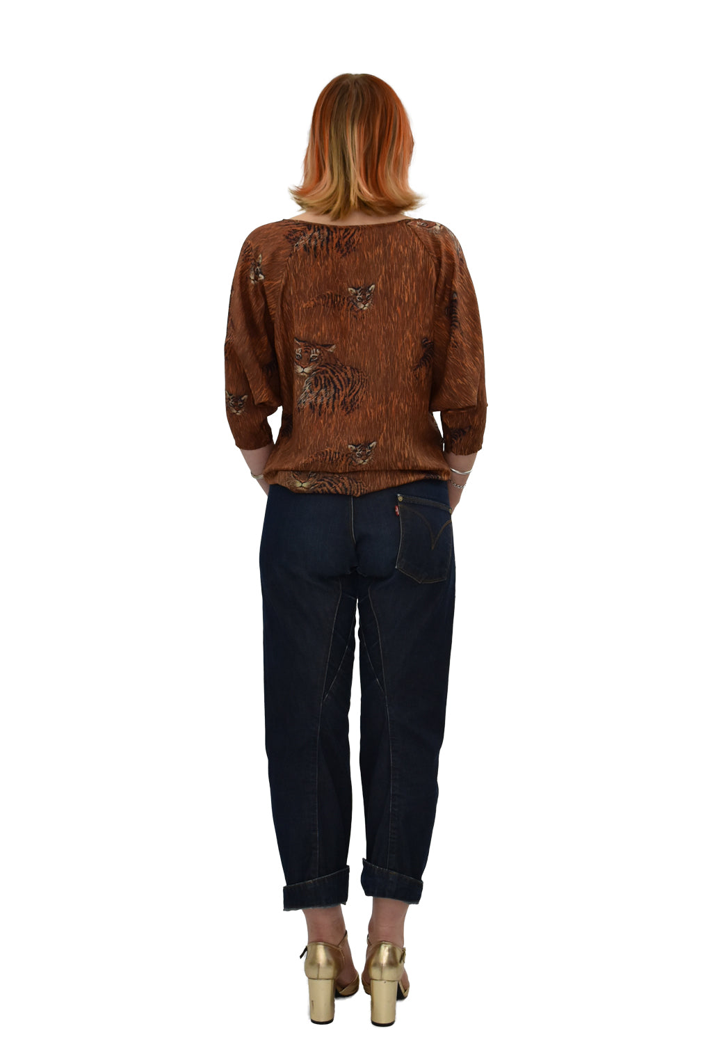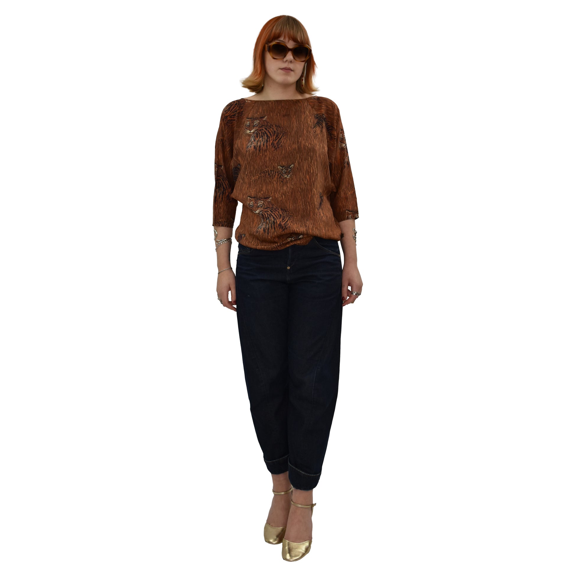 Fabulous 80's Silk tiger print batwing top, 3/4 sleeves