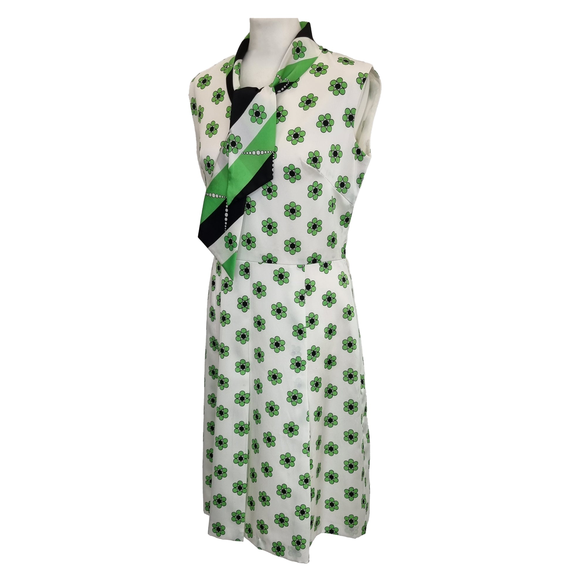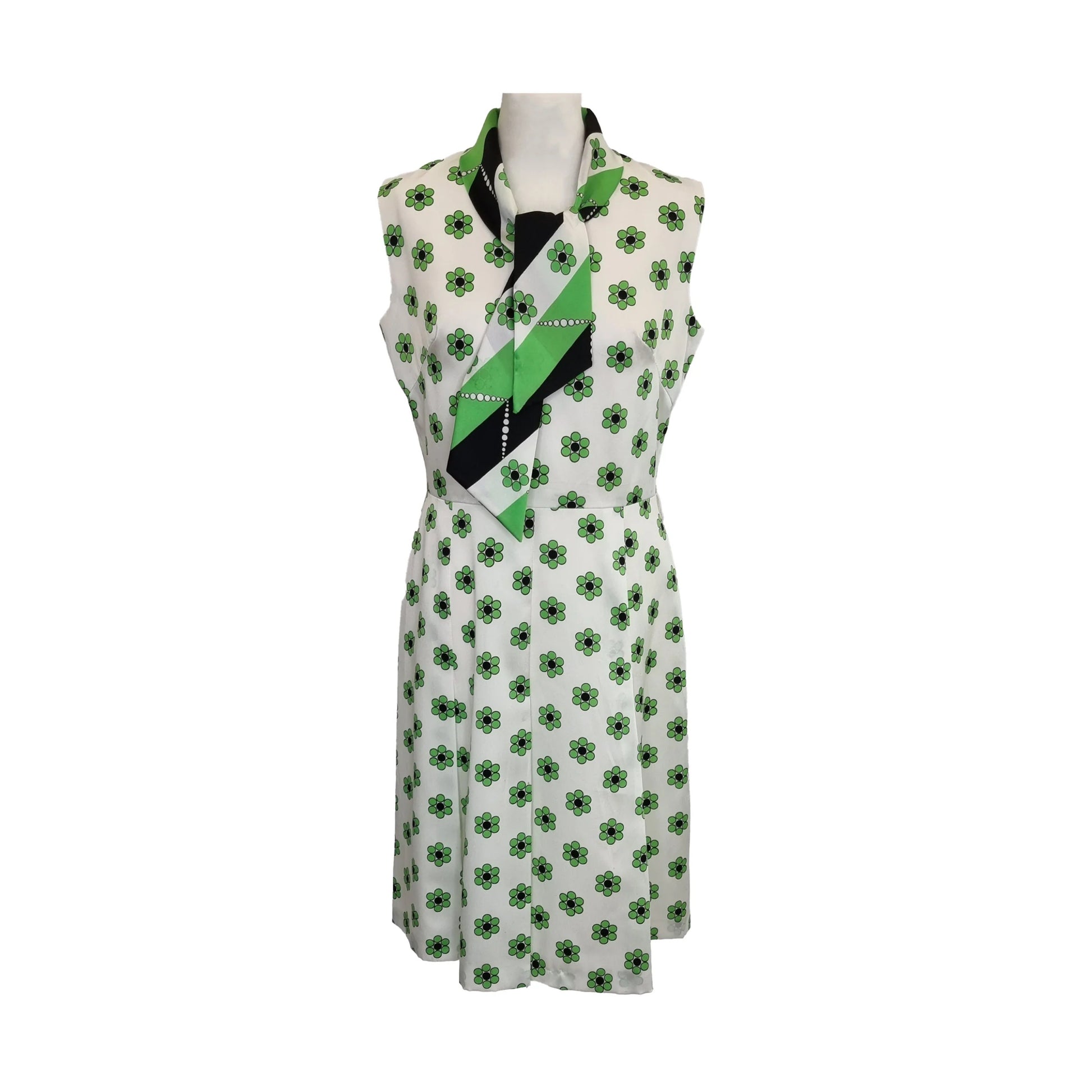 70’s Scarf Tie Floral Geometrics Sleeveless Mod Dress | Vintage