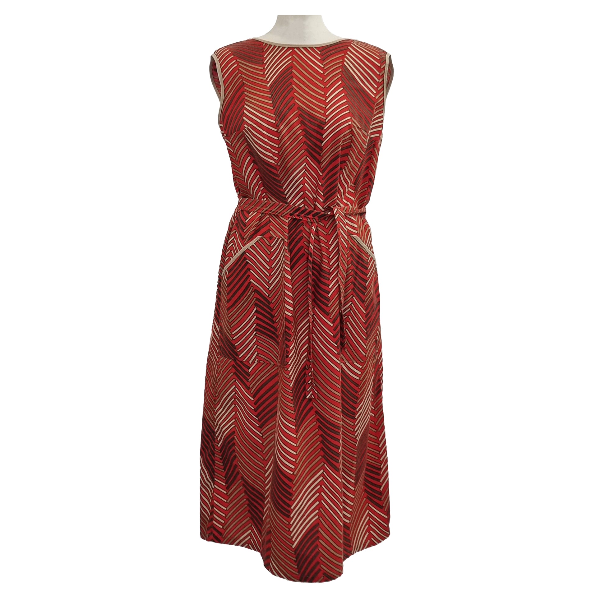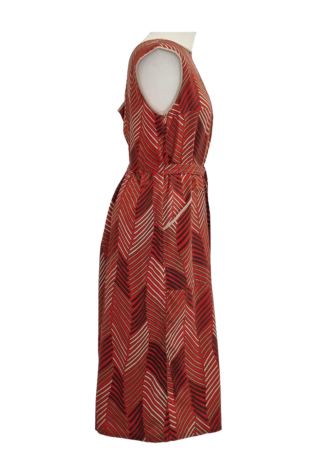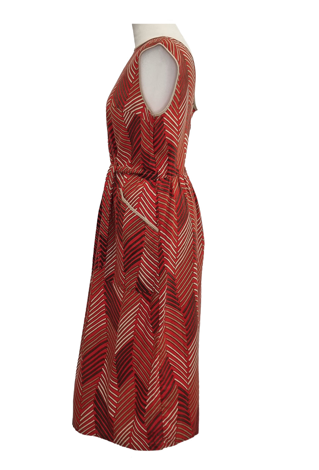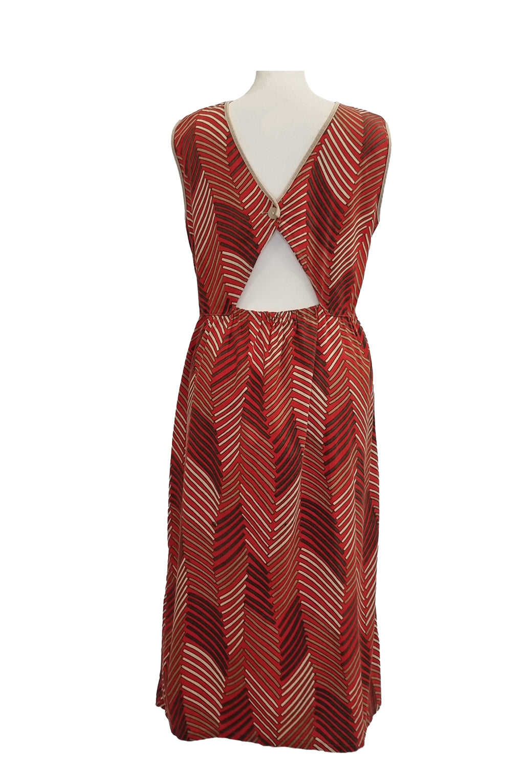 80’s Open Back Detail Red Cotton Abstract Print Dress | Vintage