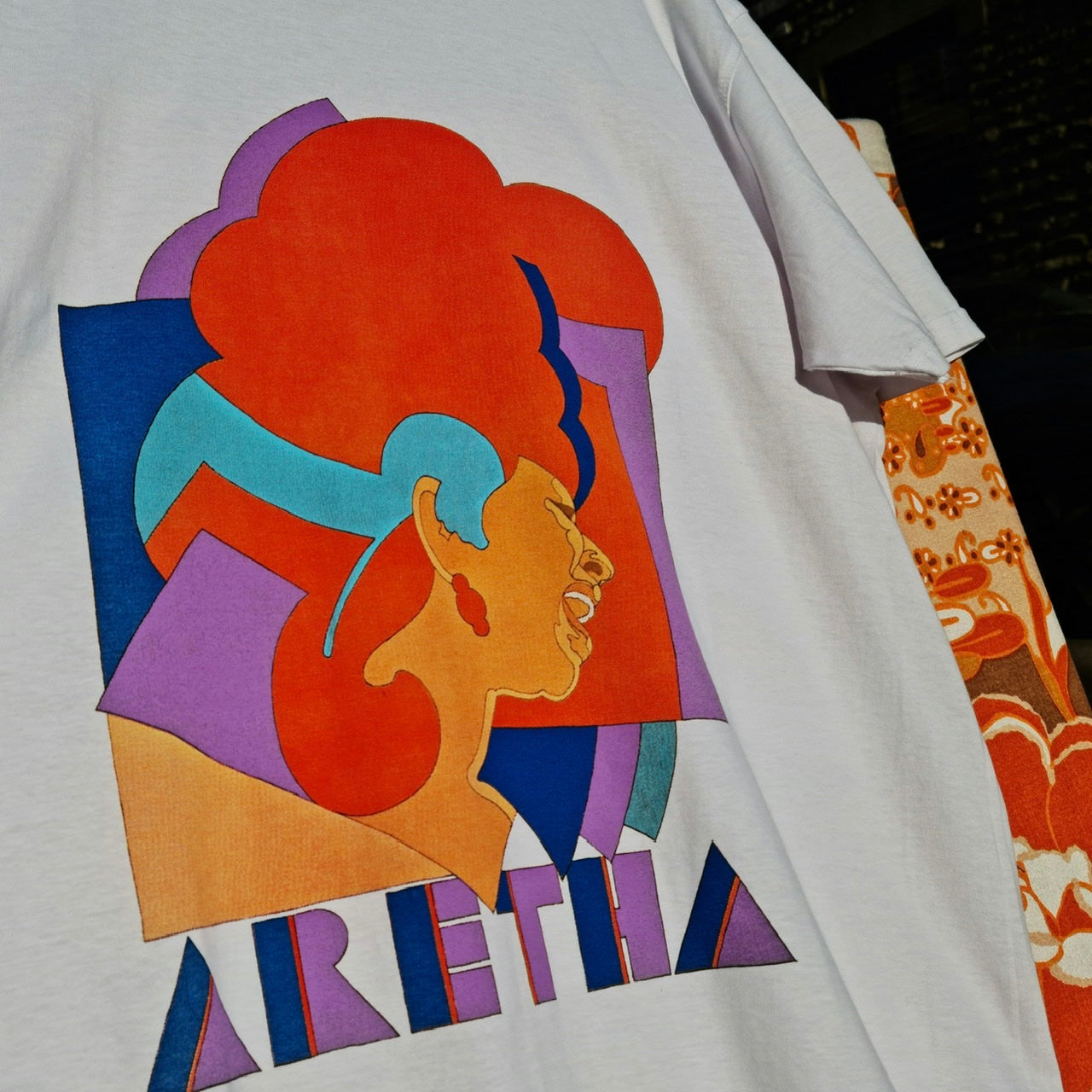 Officially licensed Aretha Franklin T shirt featuring this striking Milton Glaser graphic artwork designed for Eye Magazine in 1968.