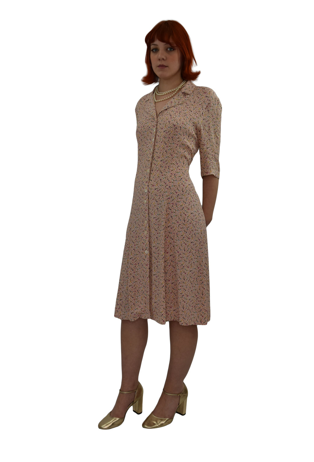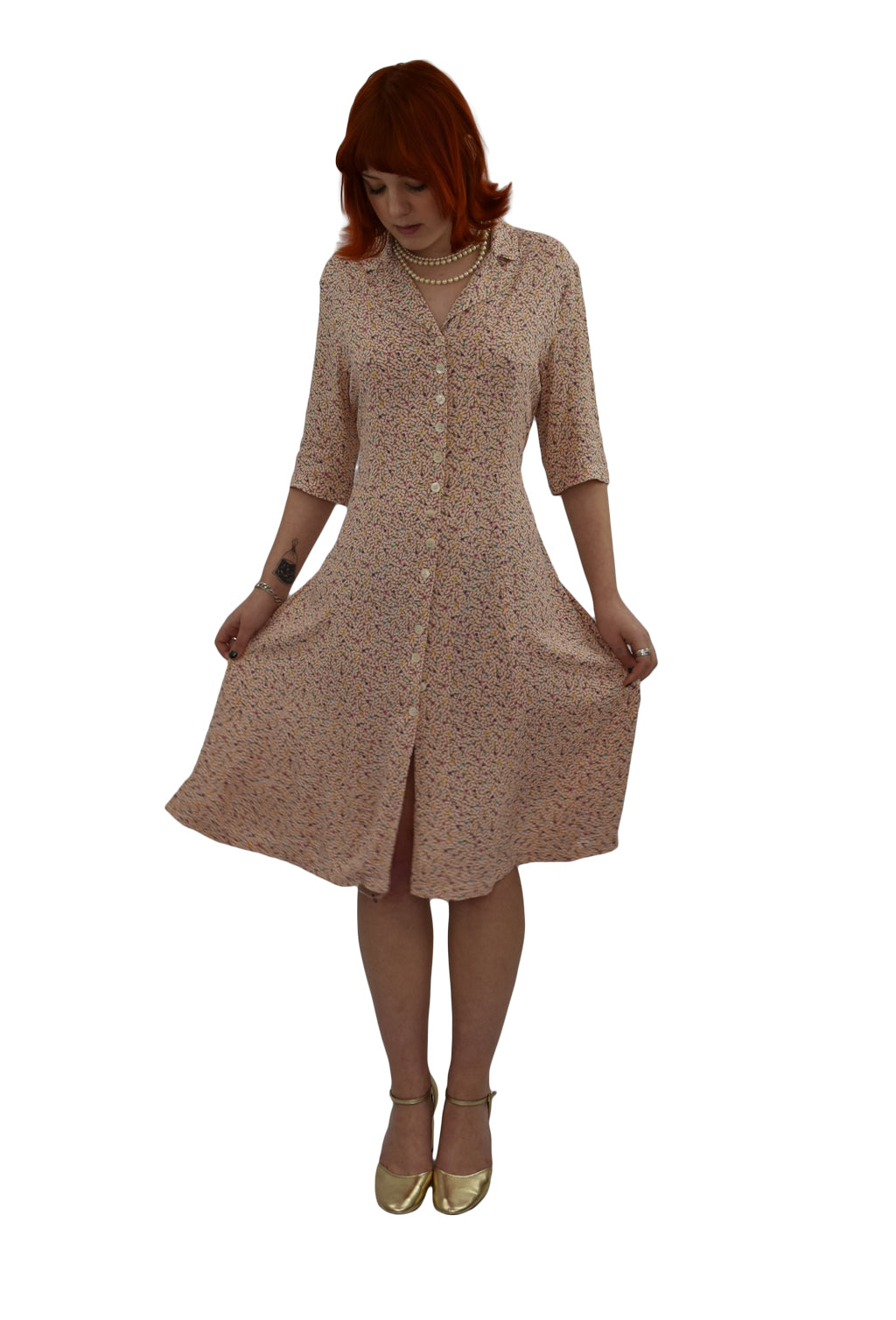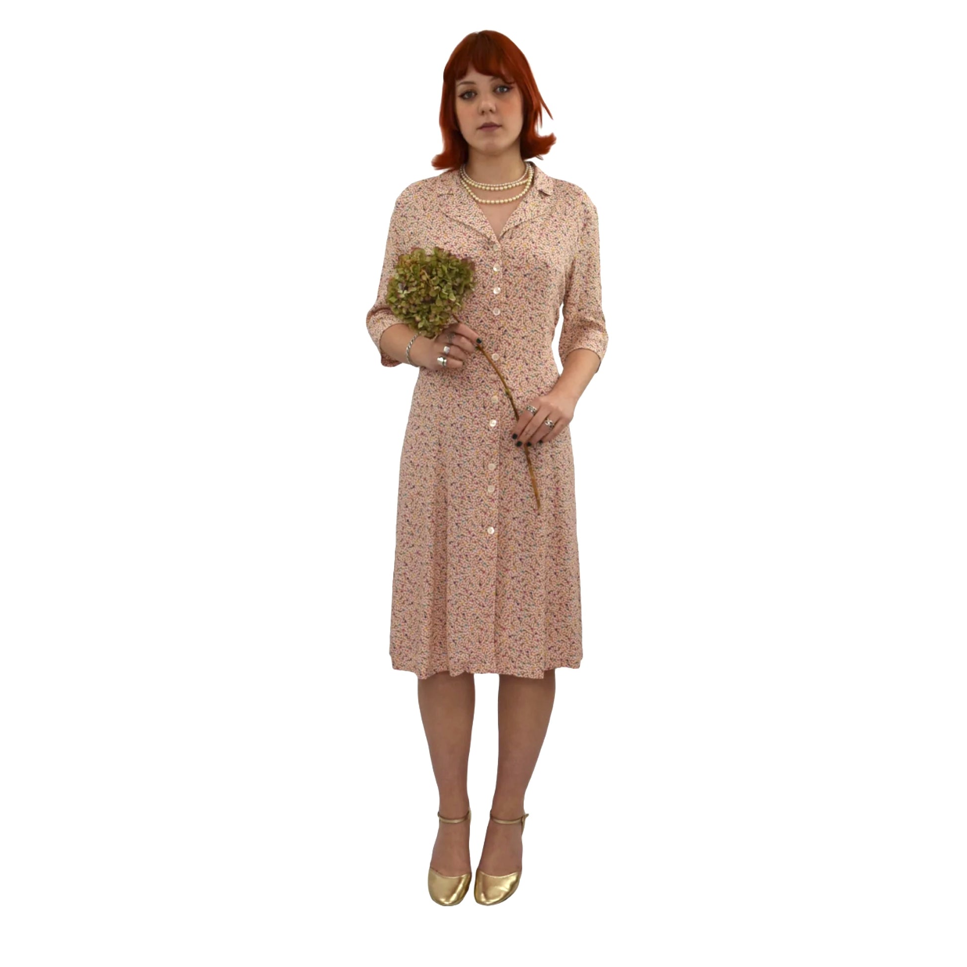 80’s Does 1940’s Abstract Floral Tea Dress | Vintage