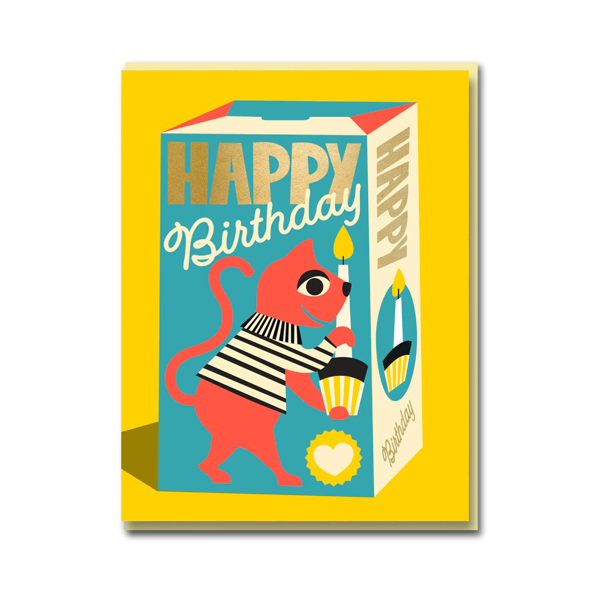 Quietly, quietly on tippy-toes comes the red cat in his stripey top. Carefully carrying your Birthday cake. This delightful card illustrated by Alice Hoffman aka Bureau Alice will make you smile from cheek to cheek.