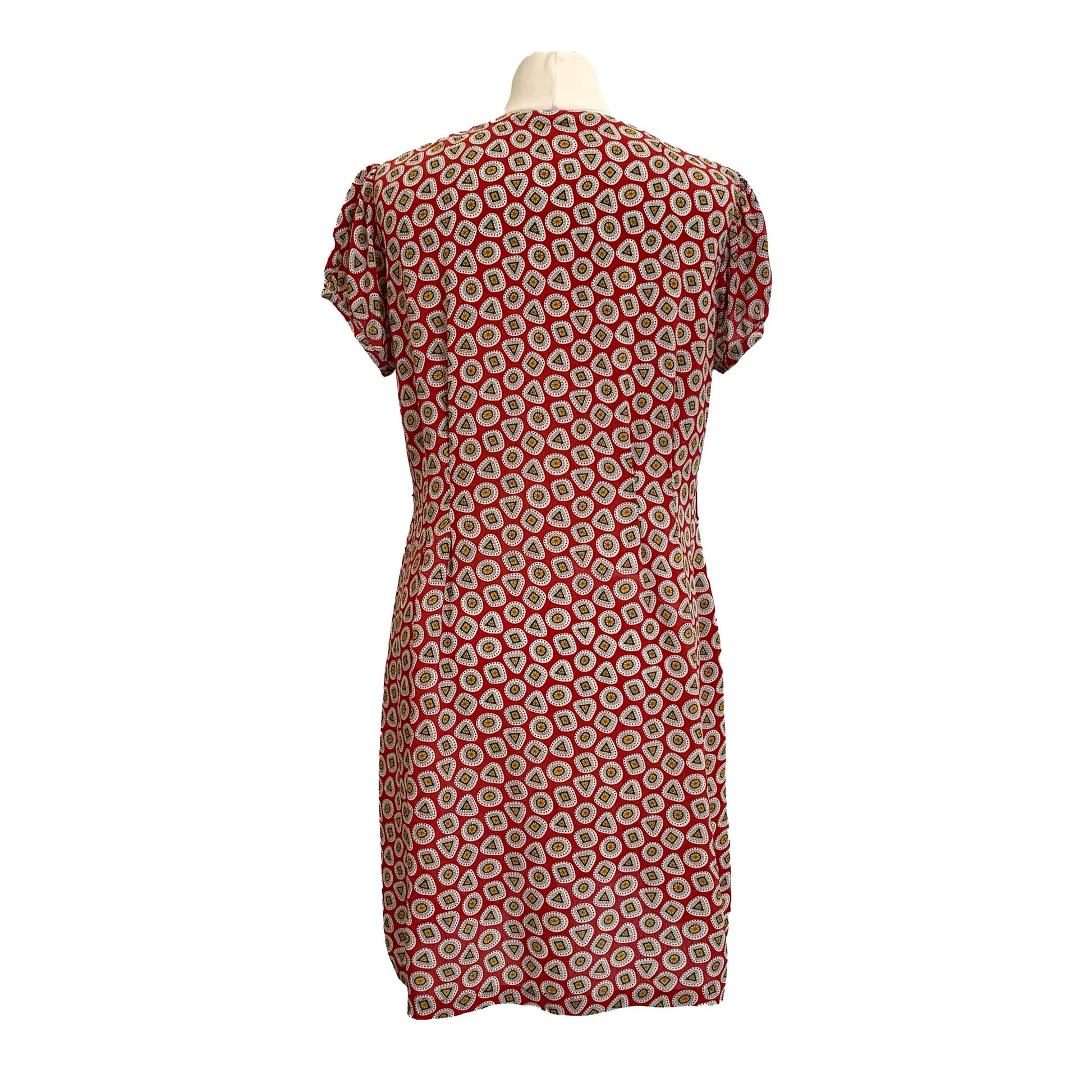 1930’s Red With Jewel Motif Print Crêpe Day Dress | Vintage