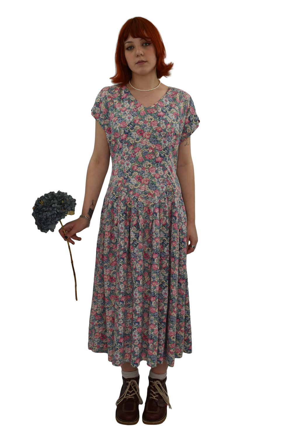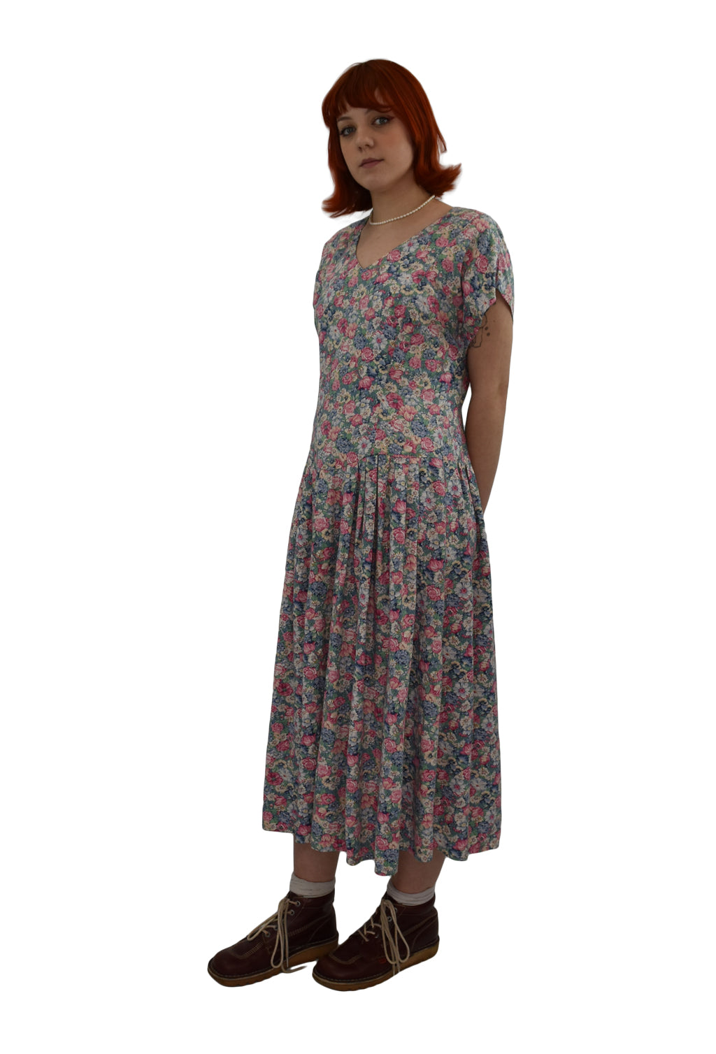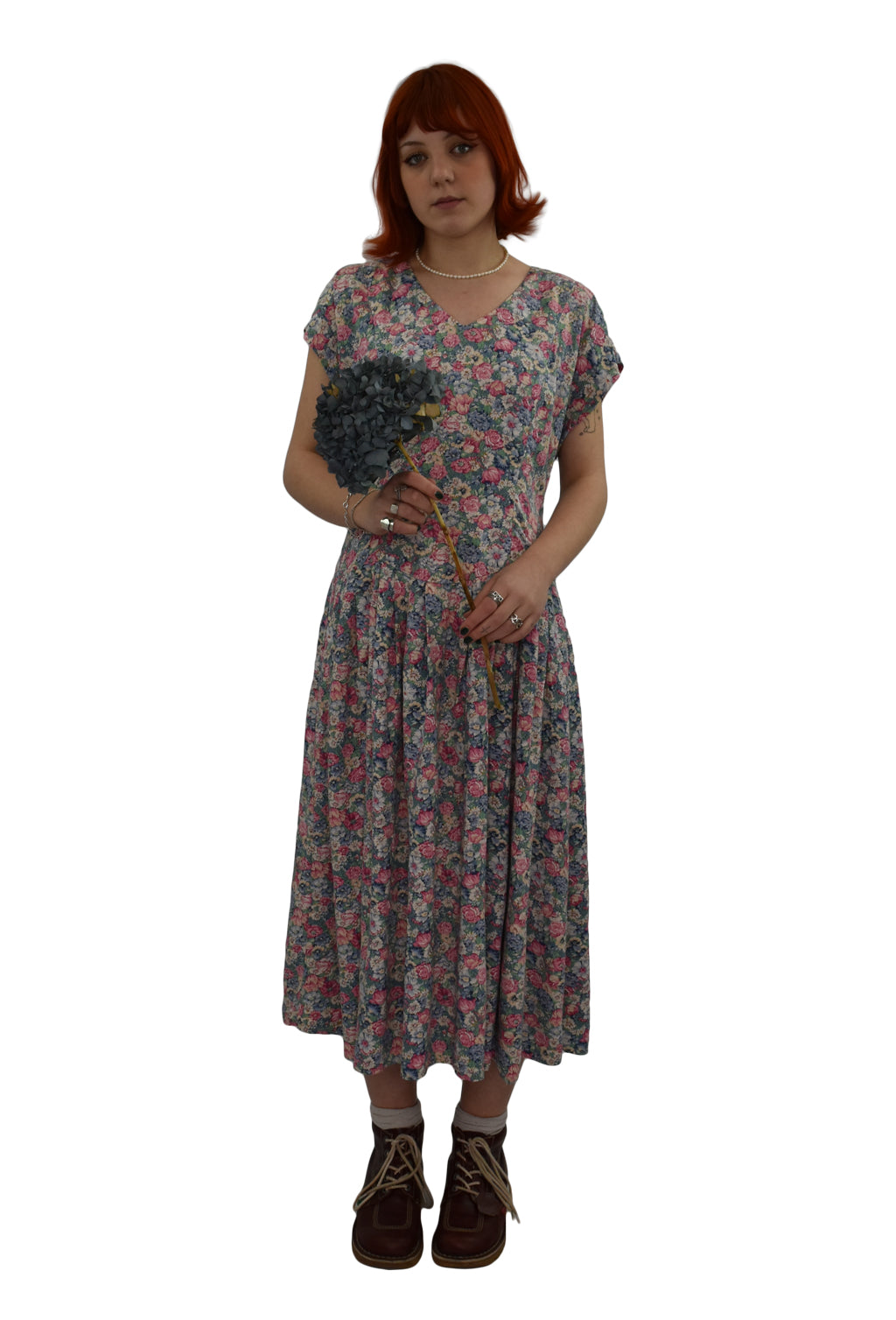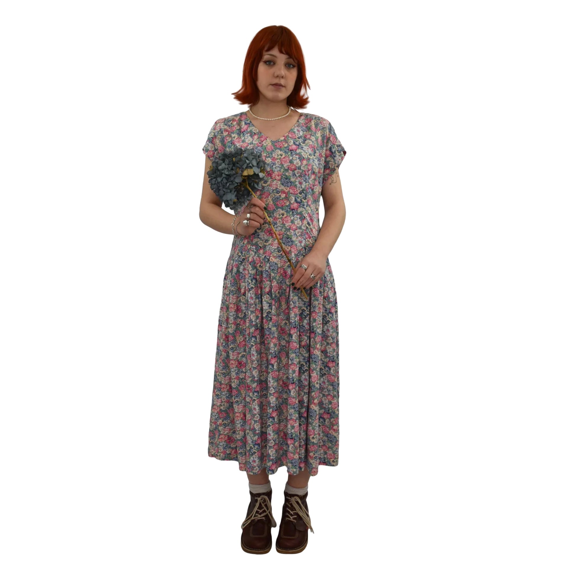 1980’s Floral Midi Dress With Gathered Skirt | Vintage