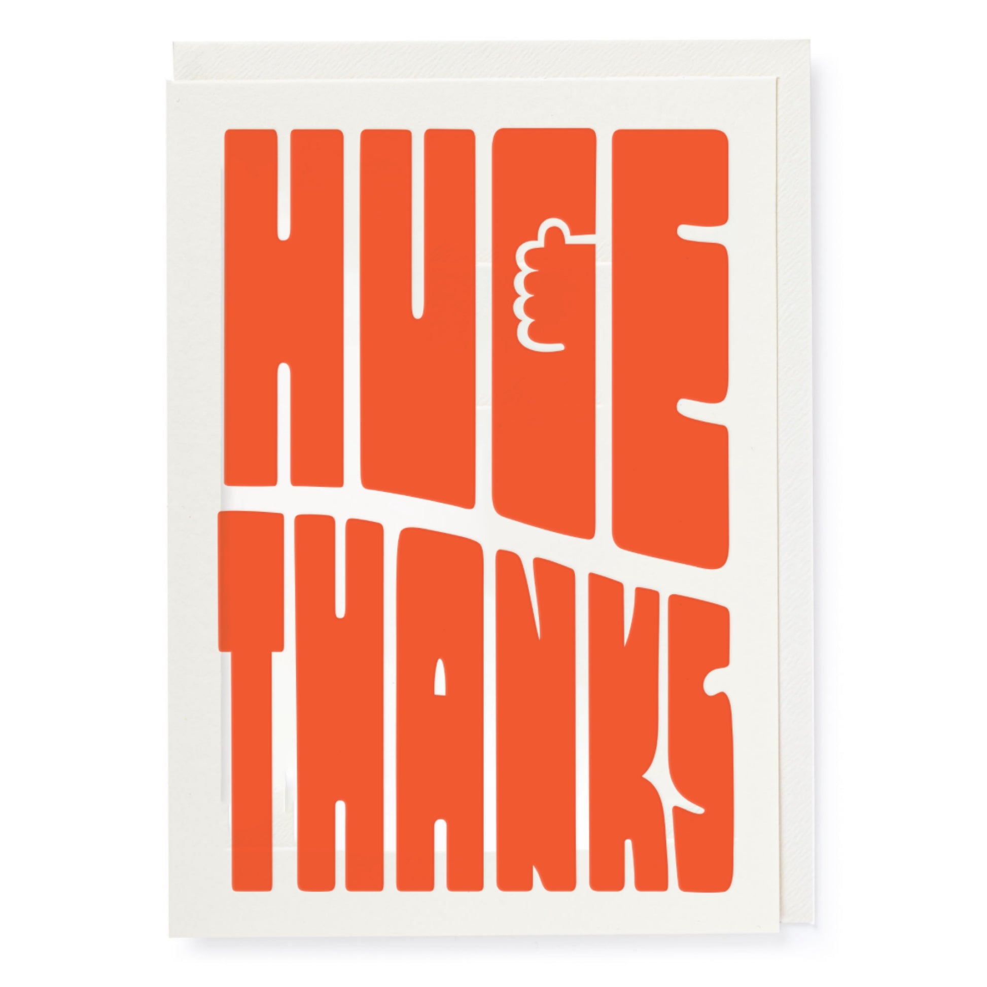 Huge Thanks letterpress printed card. Featuring a vibrant design by Paula Hirst