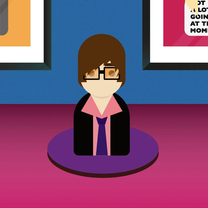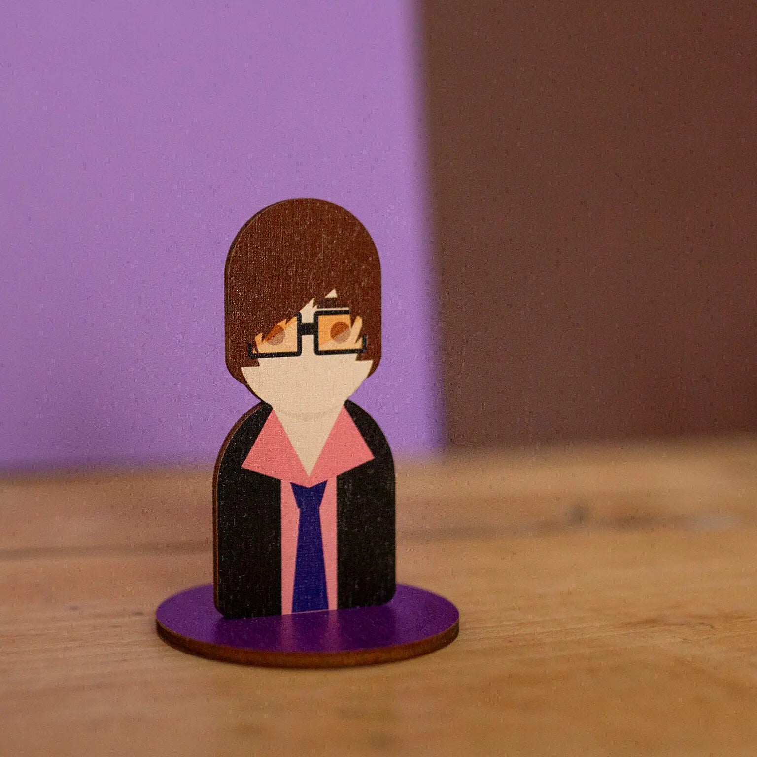 Eco friendly, UV printed wooden desk standee inspired by Jarvis Cocker.