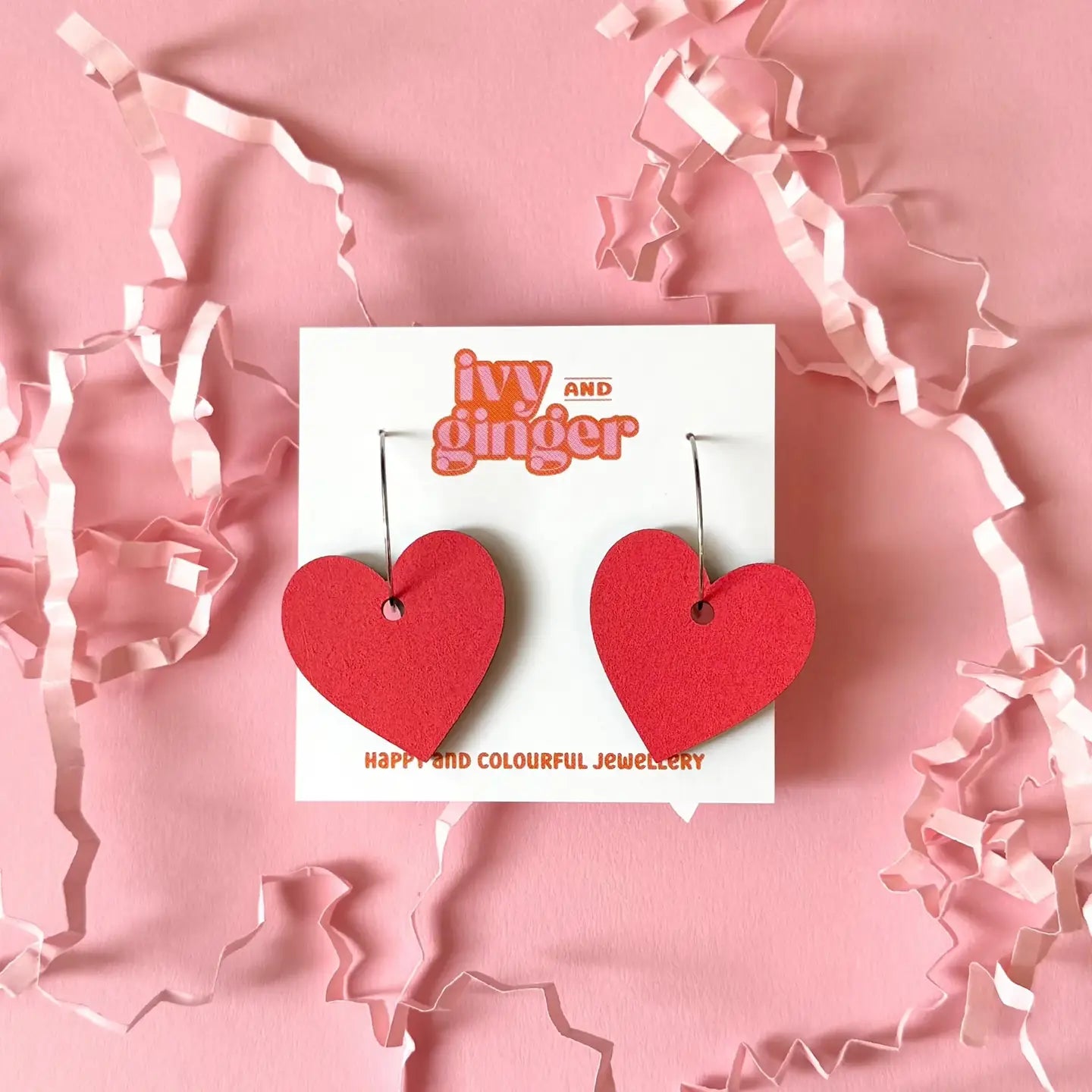 Large Red Statement Heart Hoop | Handmade Wooden Earrings