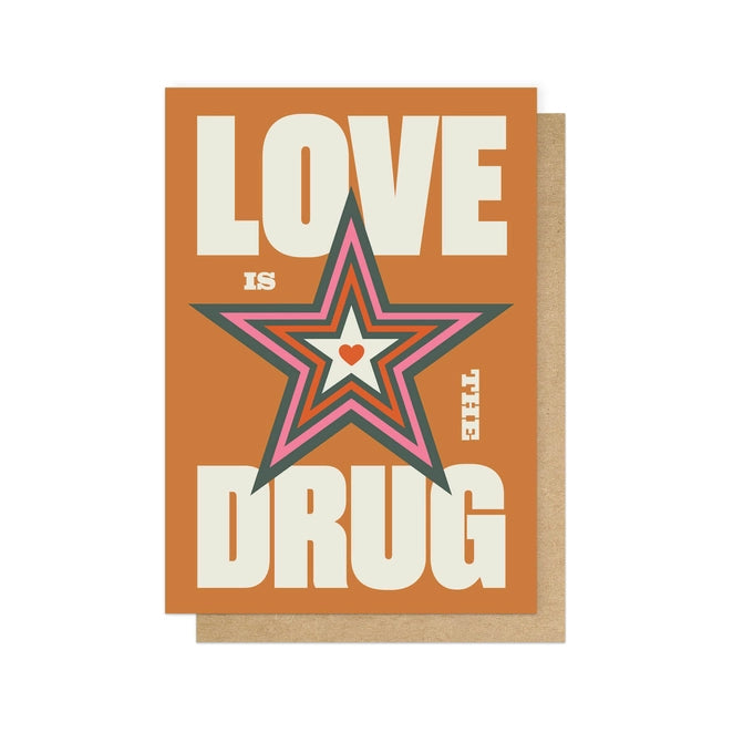 Love Is The Drug Greeting Card, Designed by Manchester based Graphic Designer Hollie Cookson.