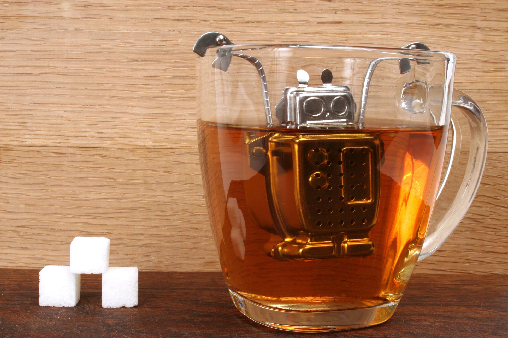 This stainless steel, robot-shaped tea infuser has adjustable arms. So, you can easily drop them into any size mug. Plus, the included tray serves as a saucer when their job is done.