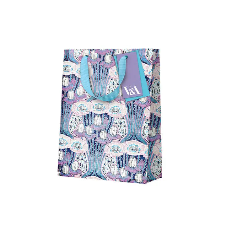 Showcasing a vibrant floral design inspired by patterns from the V&A archives. Perfect for smaller gifts, this bag combines striking Art Deco aesthetics with practical craftsmanship.